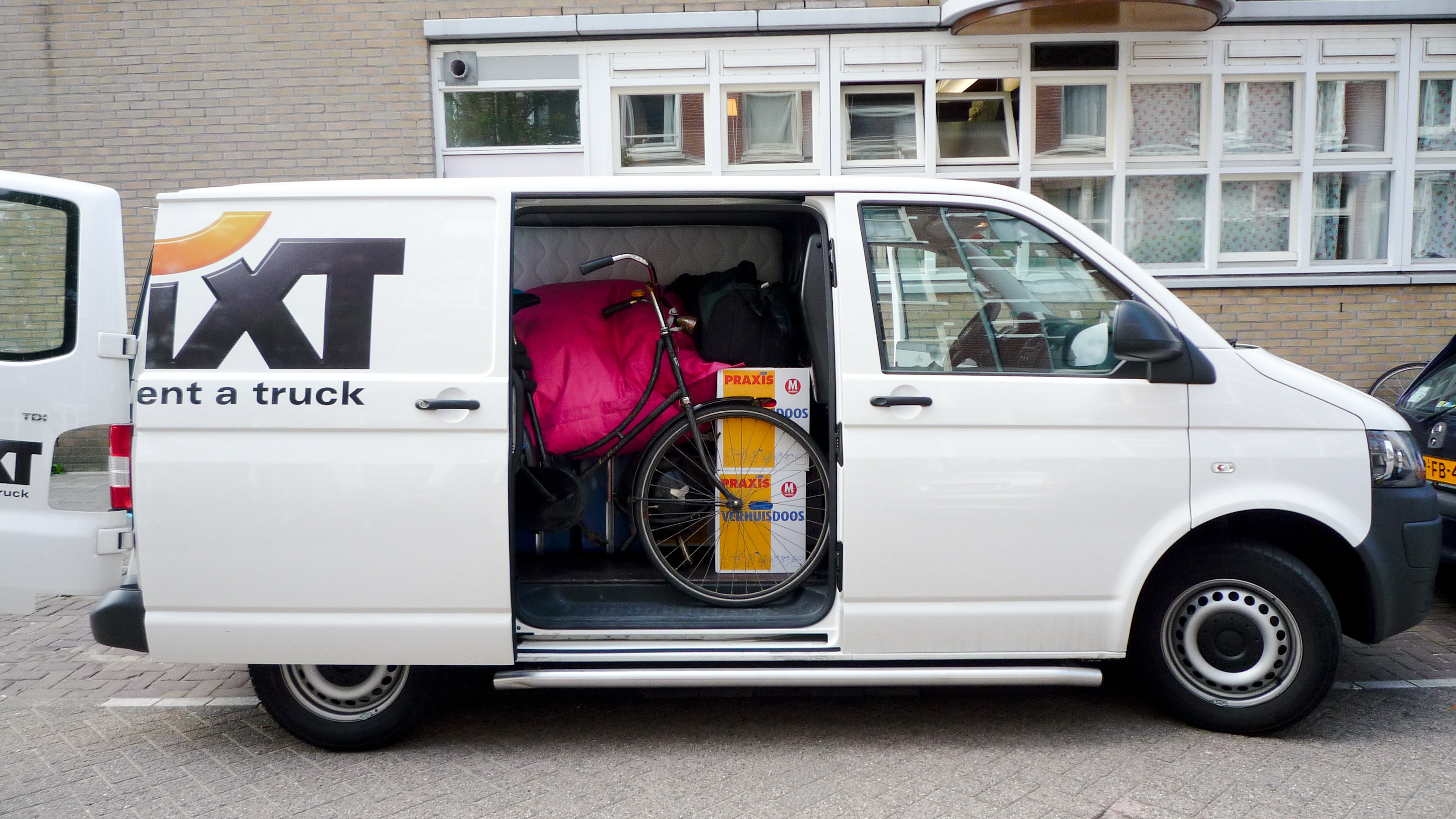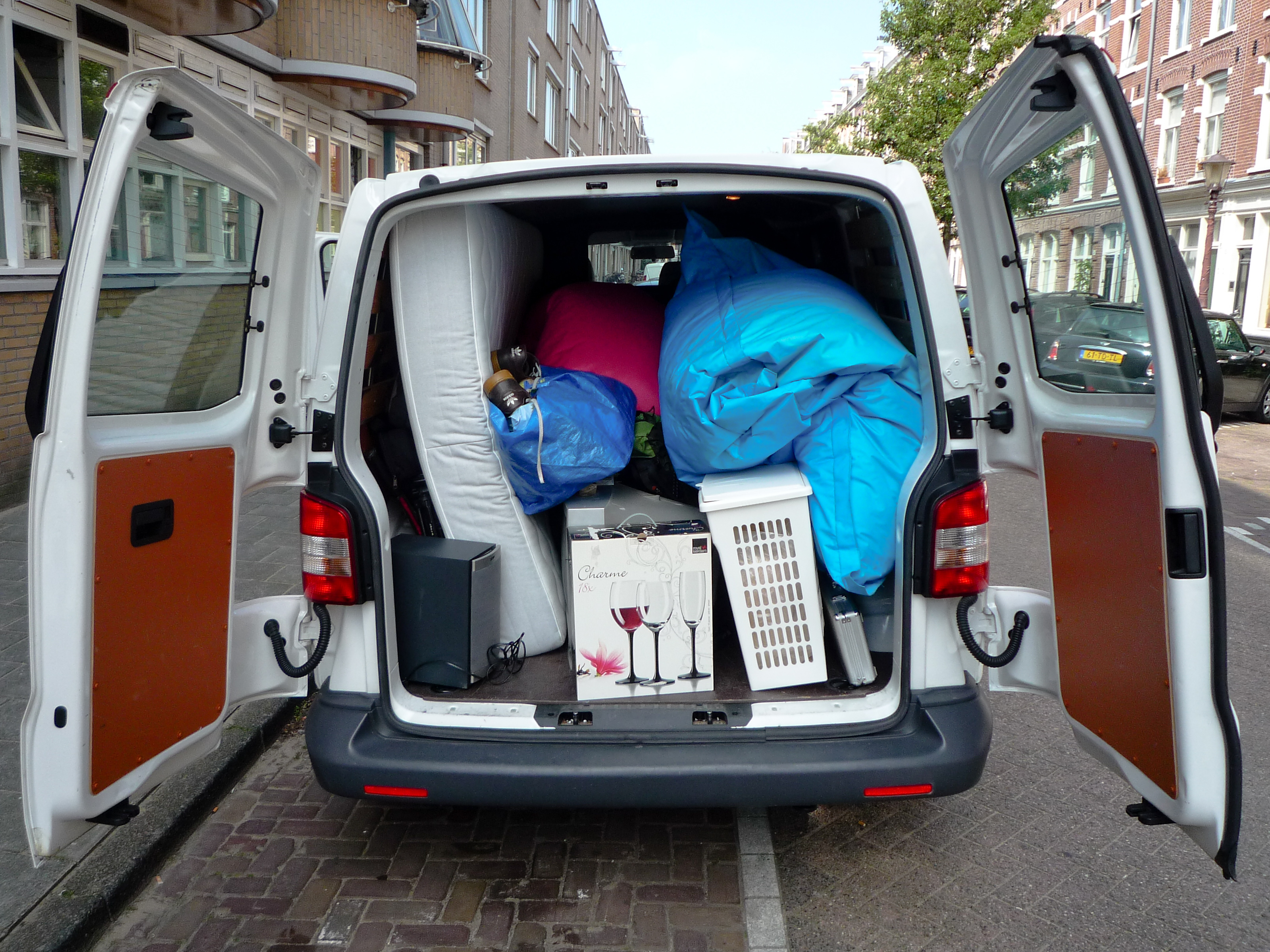 Je charge tout vendredi matin: matelas, sacs, cartons et mon fidèle vélo amstellodamois…