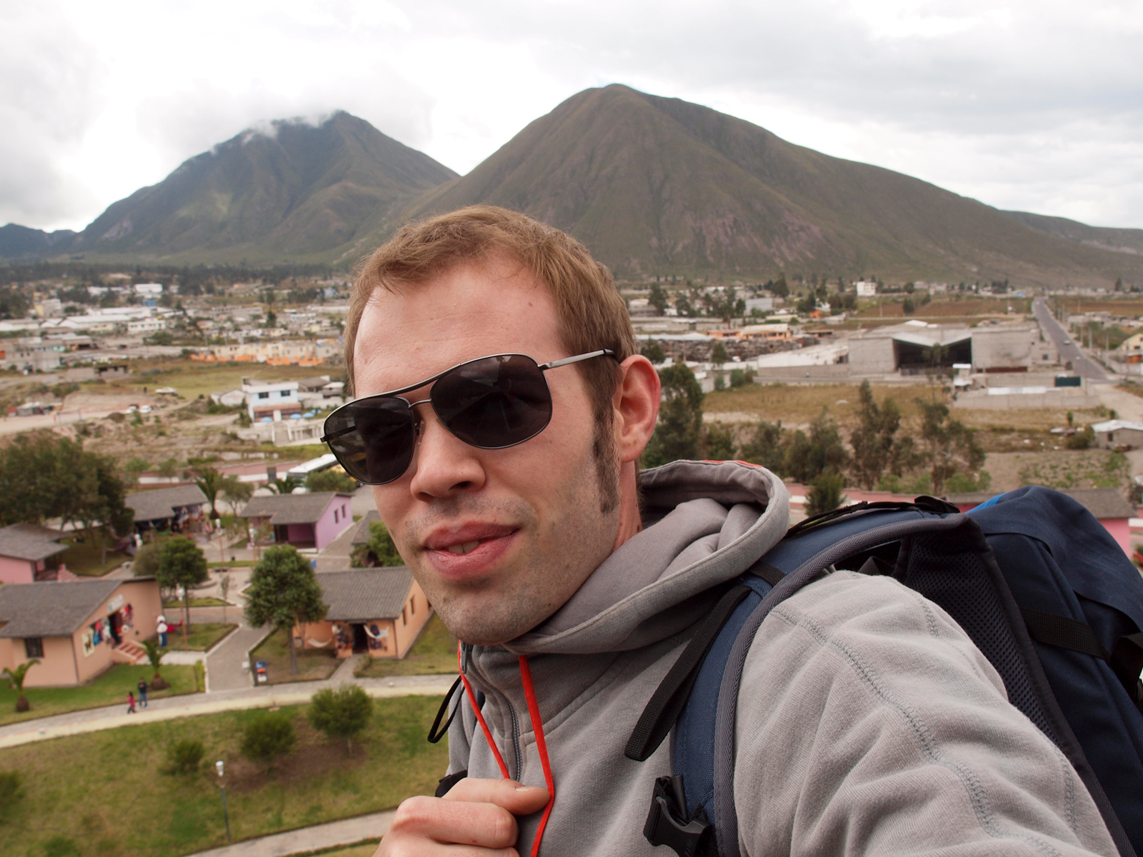 Finalement, j’y suis. Comme prévu, ce n’est pas fondamentalement passionnant - c’est un gros machin en pierre avec une ligne jaune qui symbolise l’équateur - d’un côté l’hémisphère nord, et de l’autre le sud… Il paraît qu’en plus le vrai équateur est 300m plus au nord, mais c’est pas le plus important. La vue sur les montagnes andines est plutôt chouette!