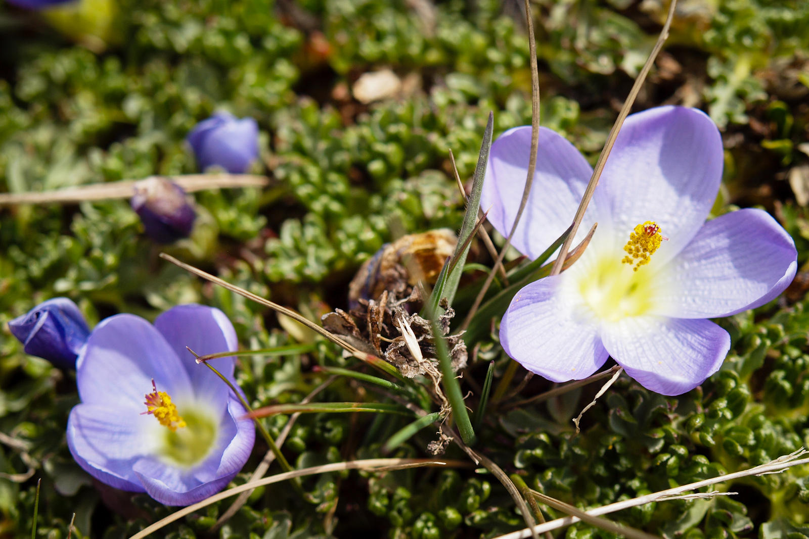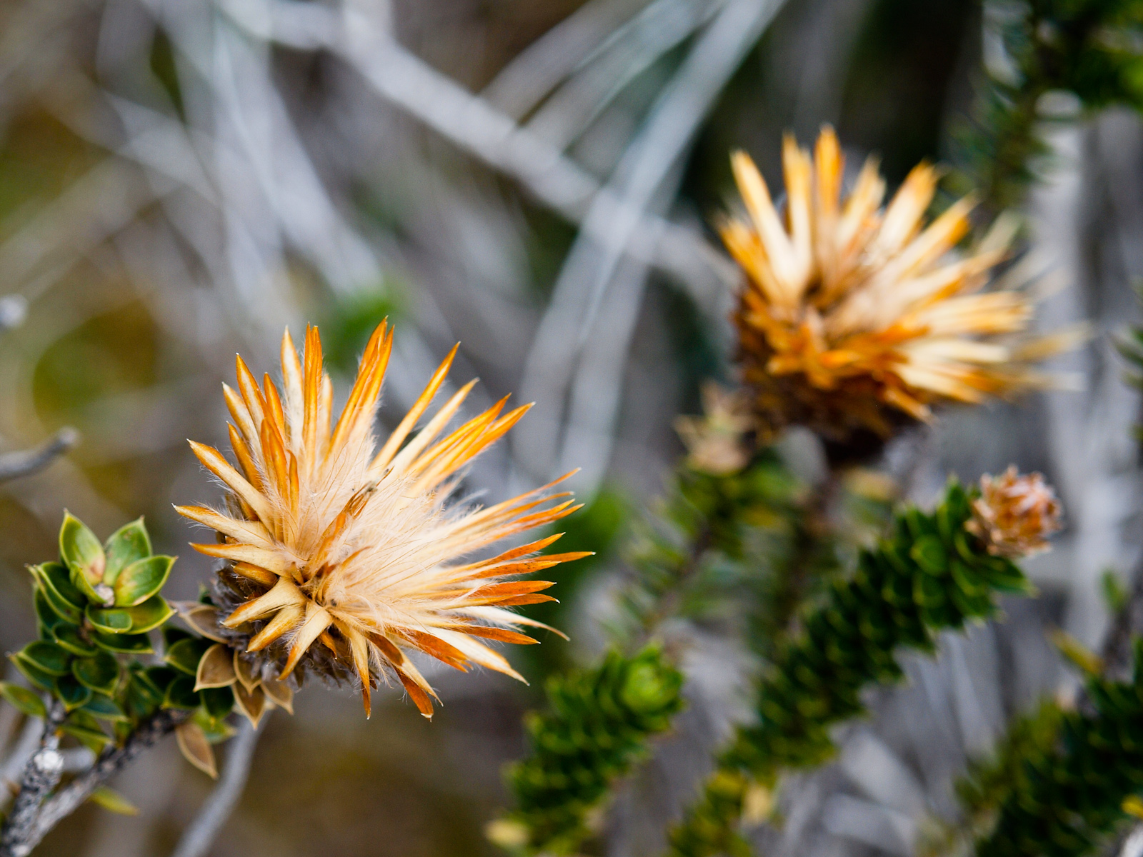La vue est magique - le matin les nuages ne sont pas encore levĂ©s et la vue est bien dĂ©gagĂ©e sur les sommets enneigĂ©s des Andes. Chaque dĂ©tour de sentier rĂ©vèle un nouveau panorama, et en 1 heure j’ai rempli une première carte mĂ©moire :) La flore est rare mais jolie - et surtout, quel silence, quel calme, quelle sĂ©rĂ©nitĂ©… Je tutoie les nuages qui se glissent mollement entre les sommets.