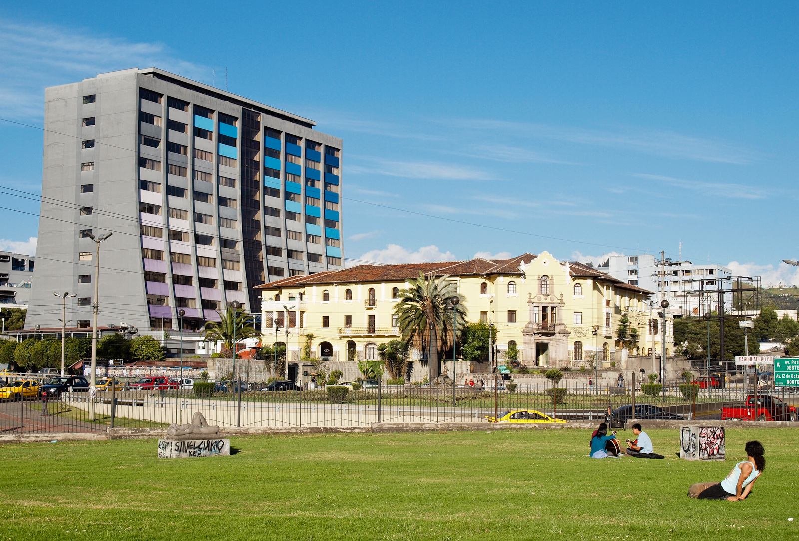 Pour finir, une petite photo “Old and New Quito” ;-). Le centre historique avec ses jolies maisons n’est qu’une infime partie de la ville, le reste étant des bâtiments plutôt moches que la pollution n’arrange pas vraiment. Heureusement des graffeurs se chargent de redécorer certains bâtiments pour les rendre plus agréables à l’oeil!