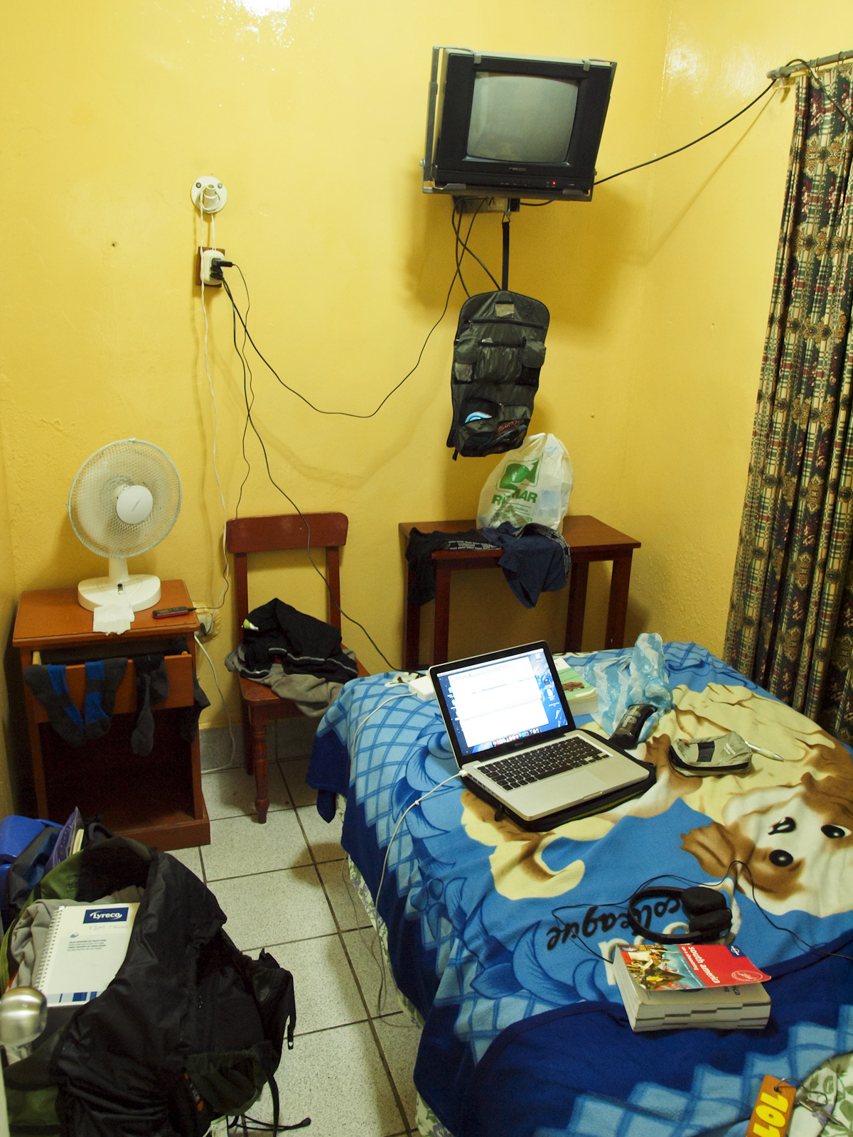 Malheureusement le soir en rentrant j’ai l’impression qu’il manque des sous dans ma réserve. J’ai du mal à définir combien (ça fait 3 jours que je n’ai pas fait mes comptes) - dans tous les cas, c’est 100$ maximum… Pourtant, rien d’autre n’a bougé dans mon sac. Je me pose des tas de questions (dans cet hôtel? dans celui d’avant? le réceptionniste? quelqu’un qui a un passe pour cadenas?). 100$, c’est pas grand chose, mais ici c’est 3 ou 4 jours de voyage, et par principe, c’est relou. Décidément, les mauvaises ondes me poursuivent - fuyons l’Équateur, ça fait trop longtemps que j’y suis!