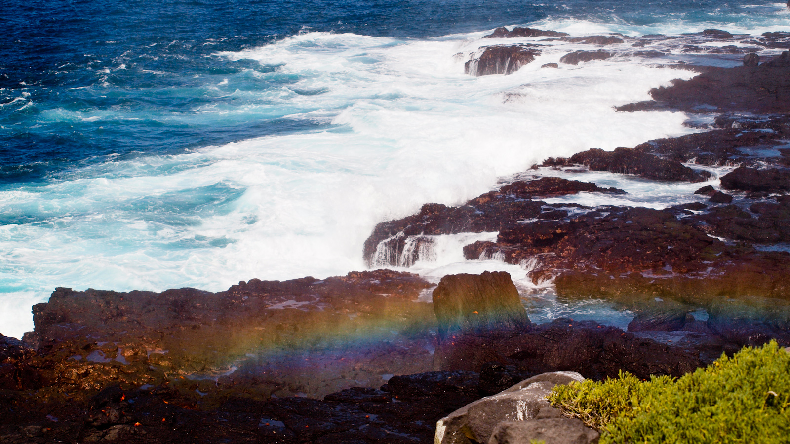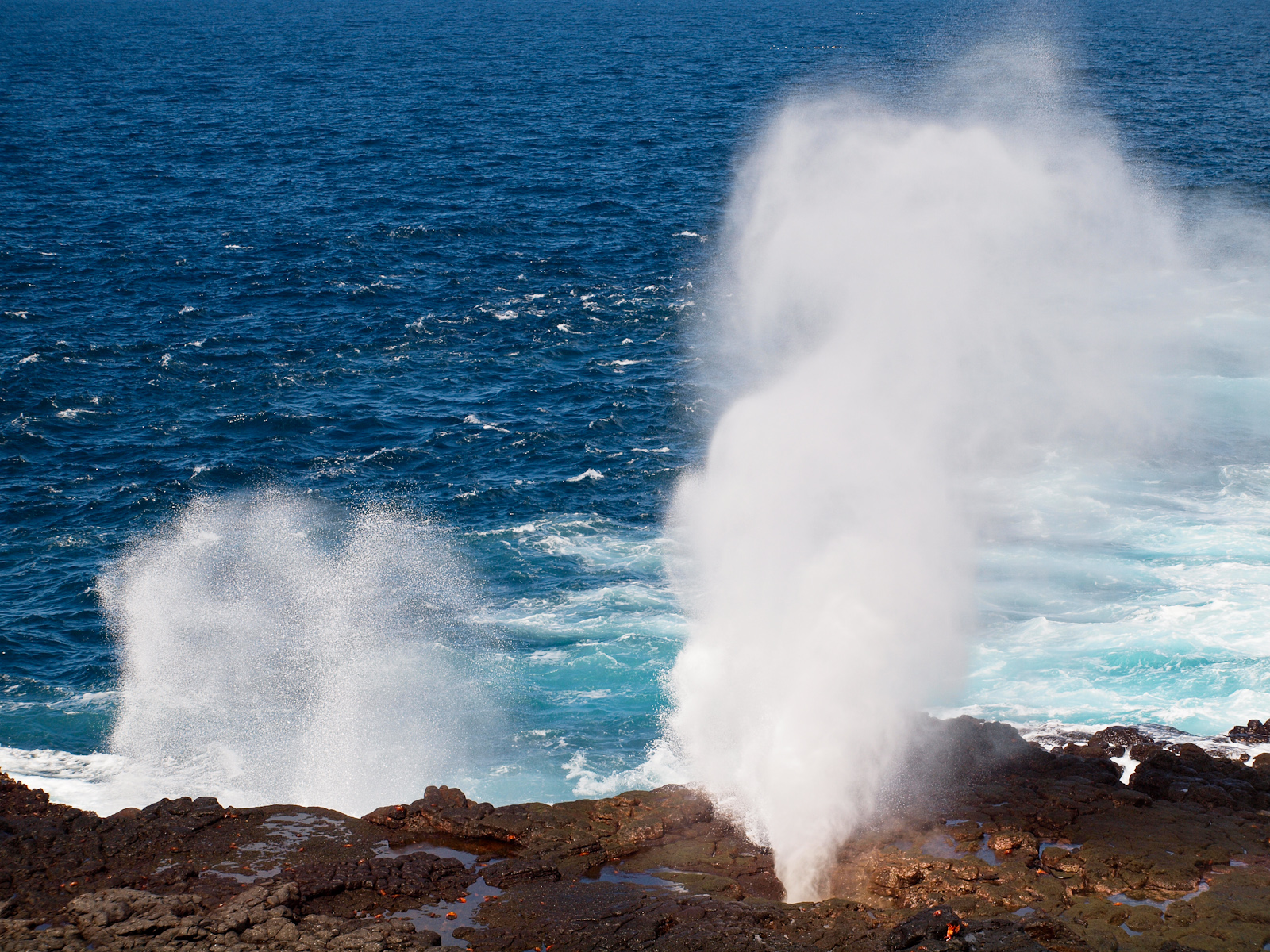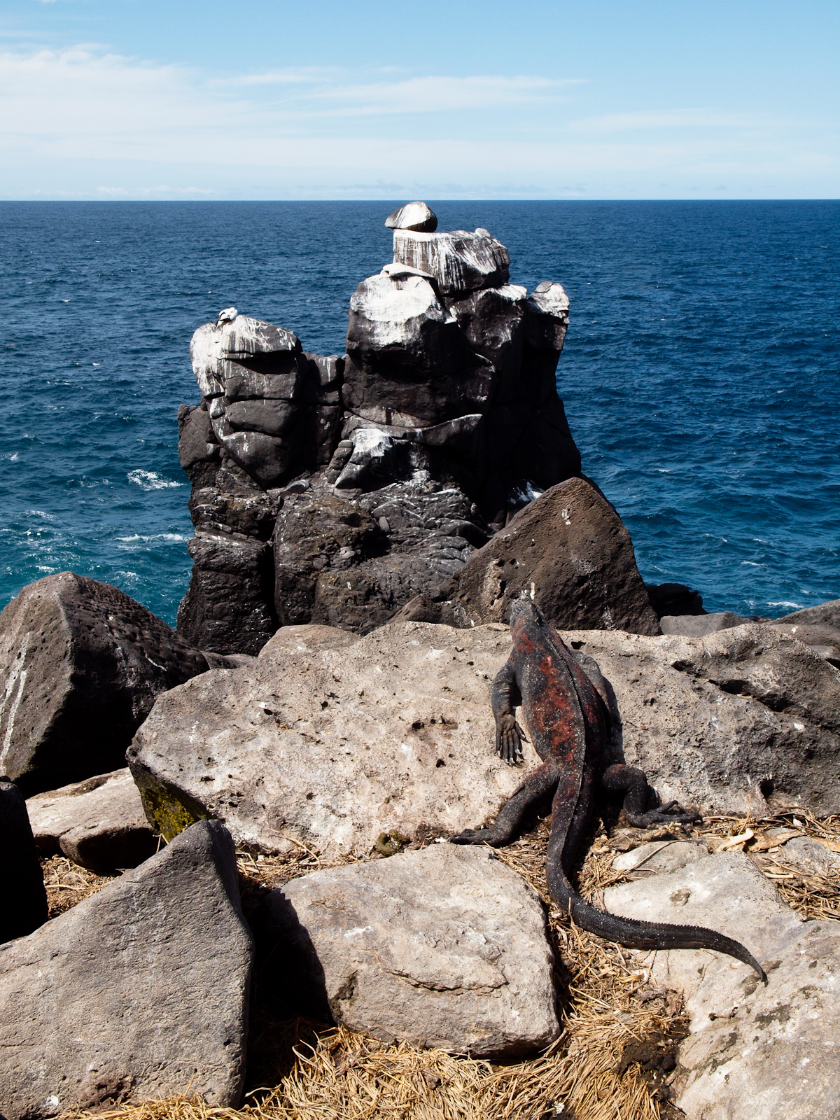 Quelques paysages: les lava blowholes, et un rocher avec son iguane de rigueur