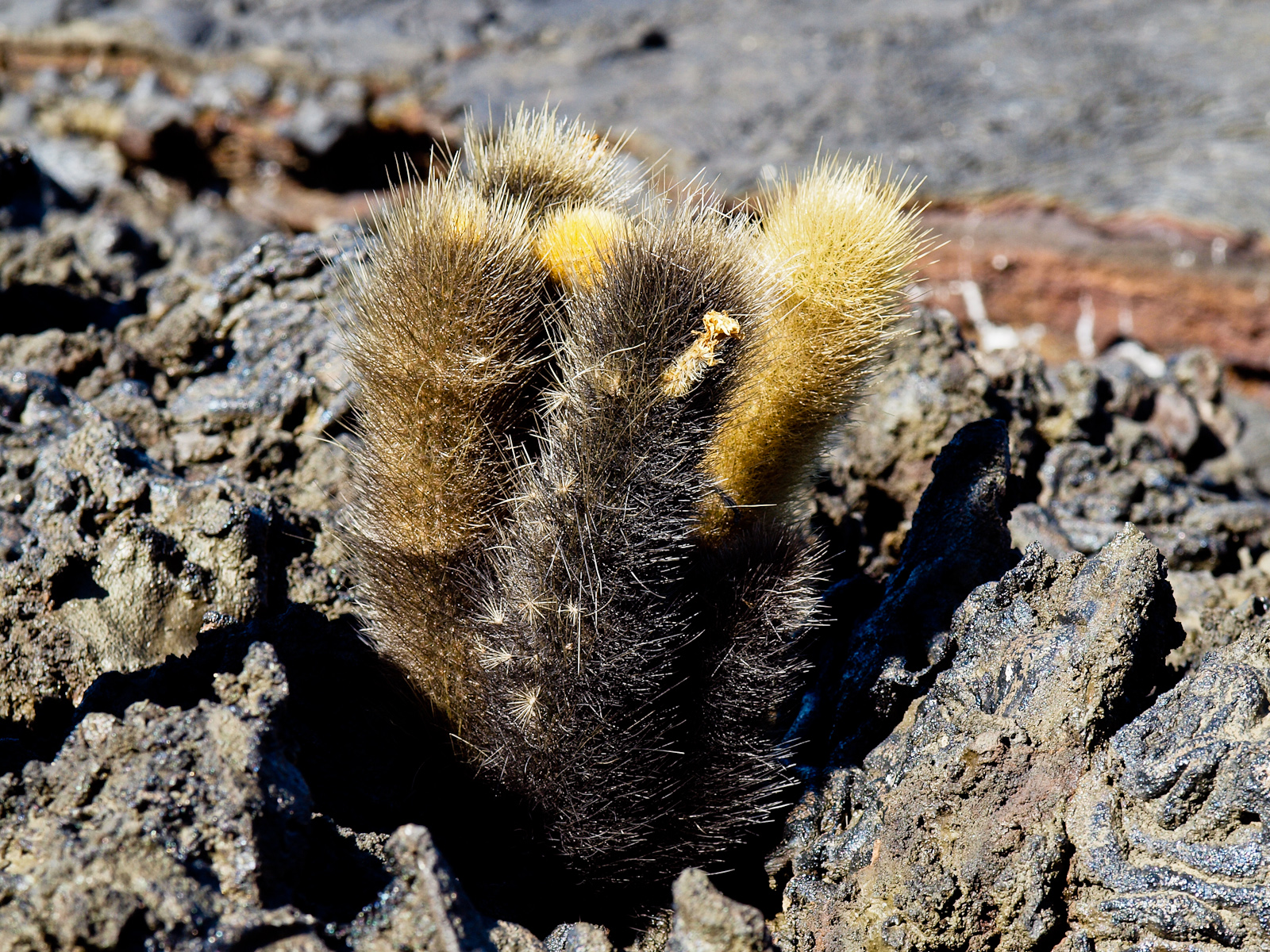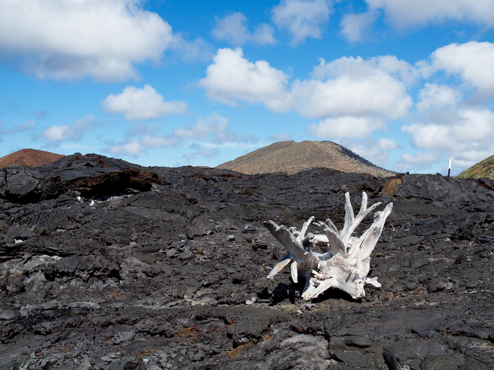 Bref, je prends des photos d’arbres morts sur de la lave parce que je suis un artiste, et on fait une chouette balade au milieu de ces paysages très désertiques. Enfin, pas tant que ça, puisque des cactus ont commencé à pousser ça et là. Les cactus de lave font partie des “plantes pionnières”, les premières à coloniser un milieu (et subséquemment à favoriser l’apparition de la vie animale).
