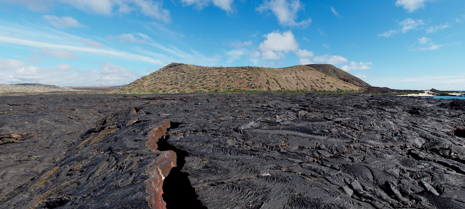 On commence par visiter Sullivan Bay sur l’île de Santiago, qui possède de nombreux champs de lave. Il faut savoir qu’il existe deux types de lave: