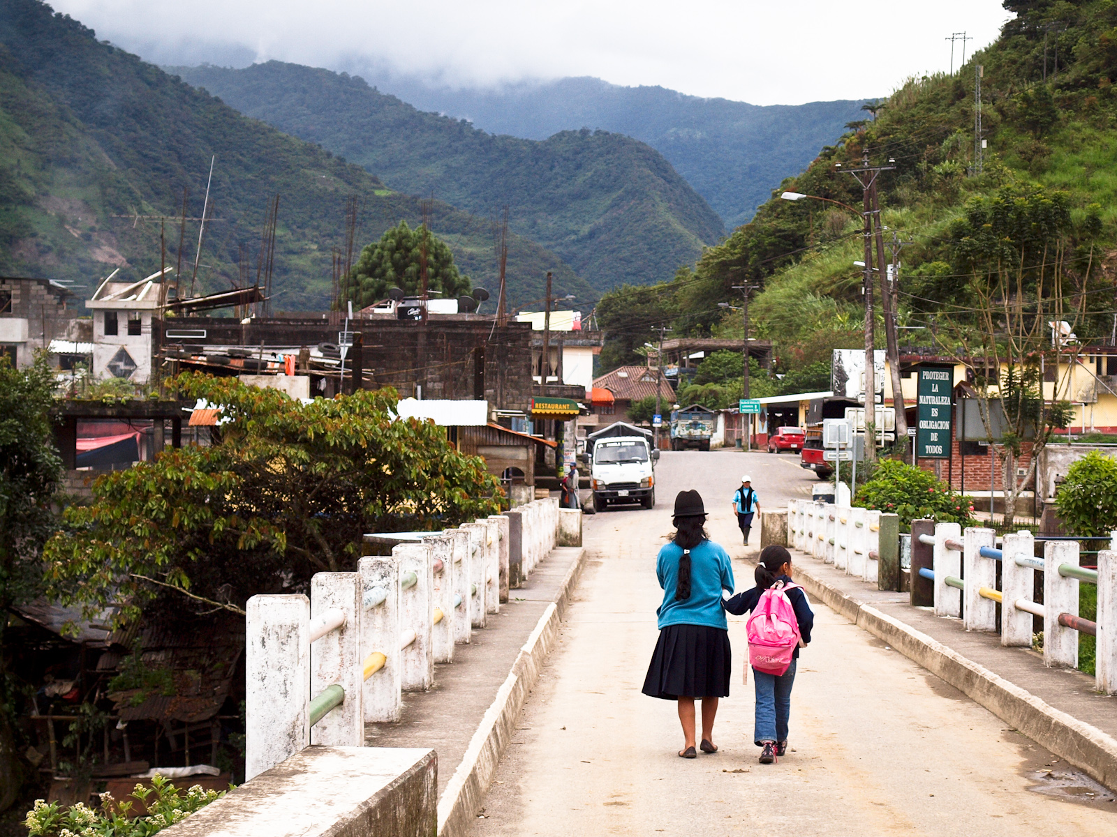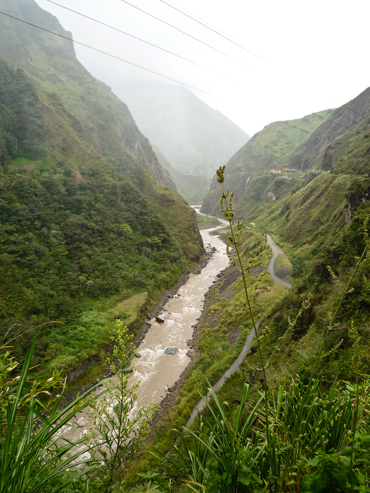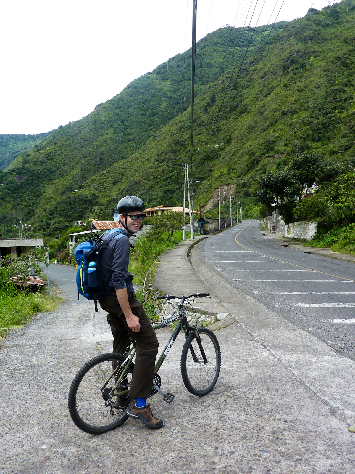 Le temps étant bien ensoleillé, on se décide pour aller faire la balade classique en vélo: il y a une route qui serpente entre les montagnes et descend jusqu’à Puyo, ville qui marque le “début” de la jungle.