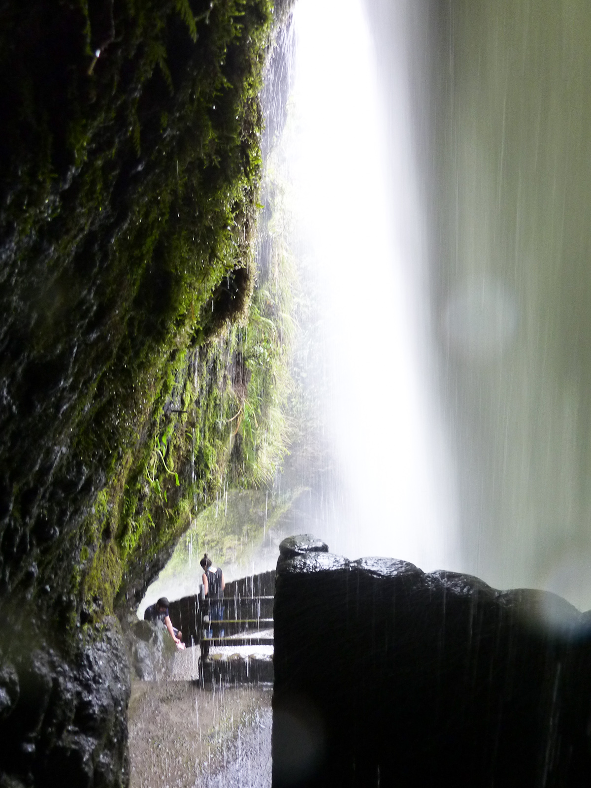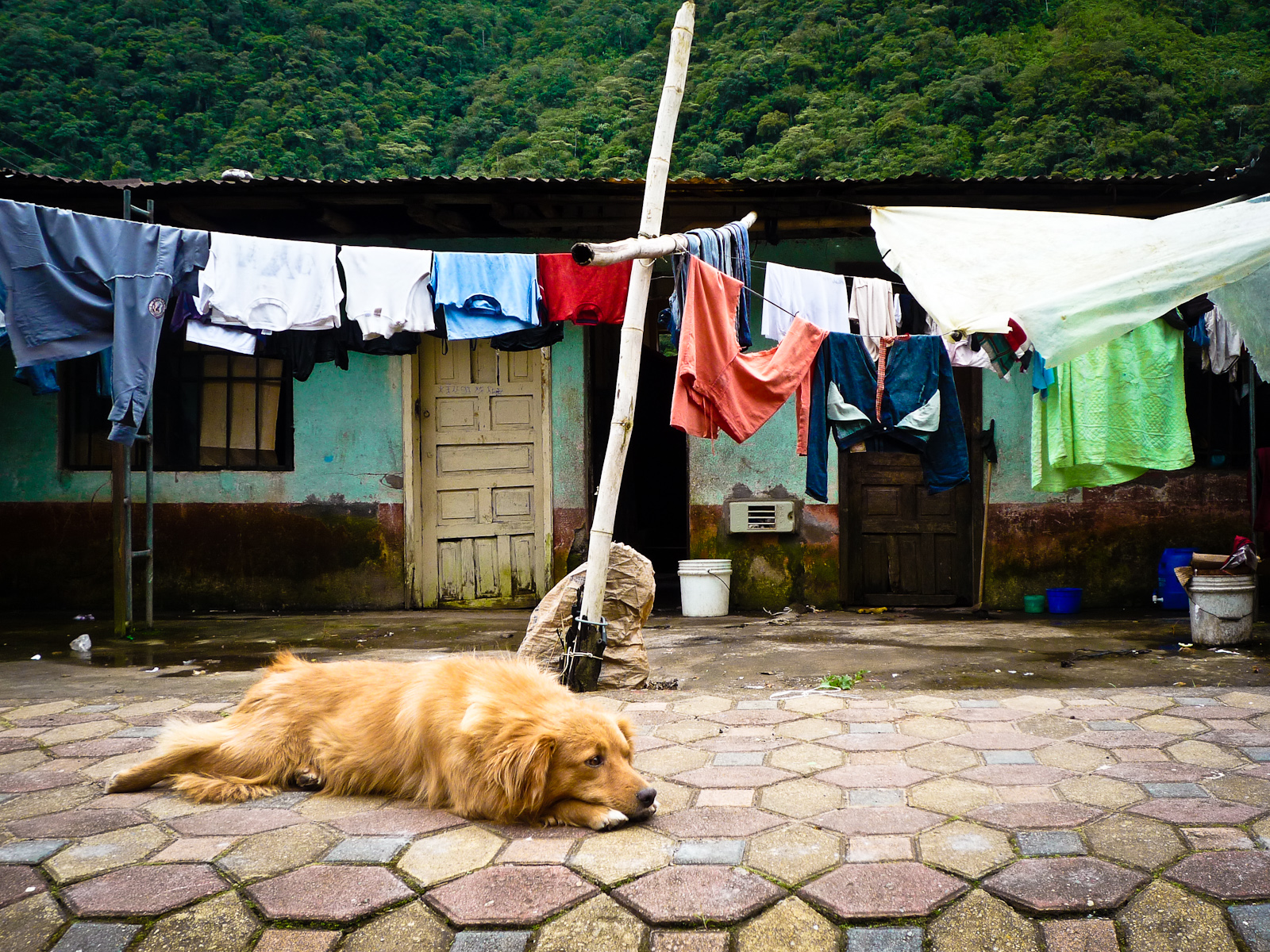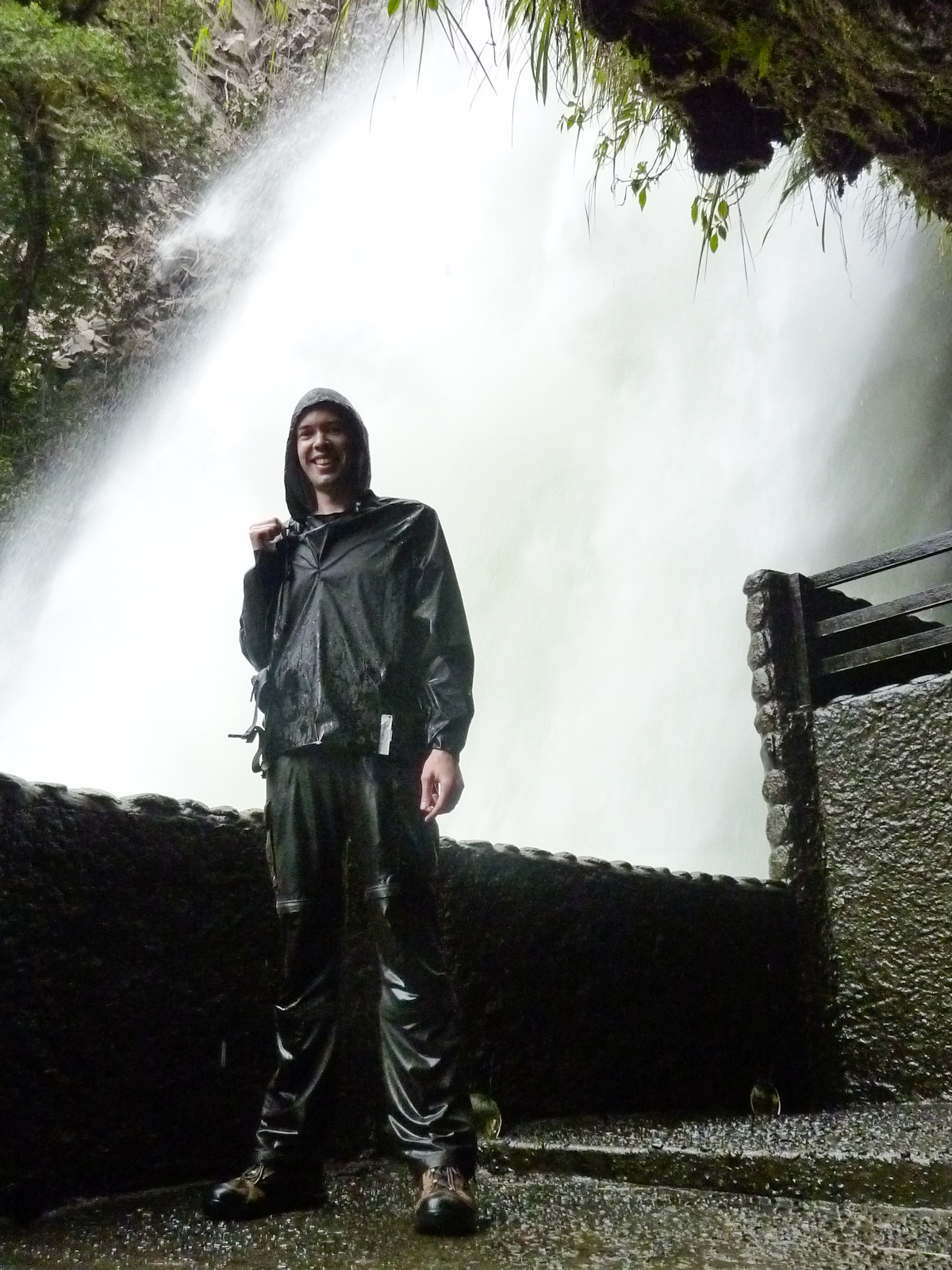 La route continue avec son cortège de petits villages et de chiens léthargiques jusqu’à Rio Verde, petite ville sympathique où se trouve aussi el Pailon del Diablo , la plus grosse cascade du coin. On peut même se faufiler à 4 pattes dans un petit tunnel pour passer derrière la chute, une nouvelle occasion de vérifier si mes affaires sont imperméables et / ou sèchent vite…
