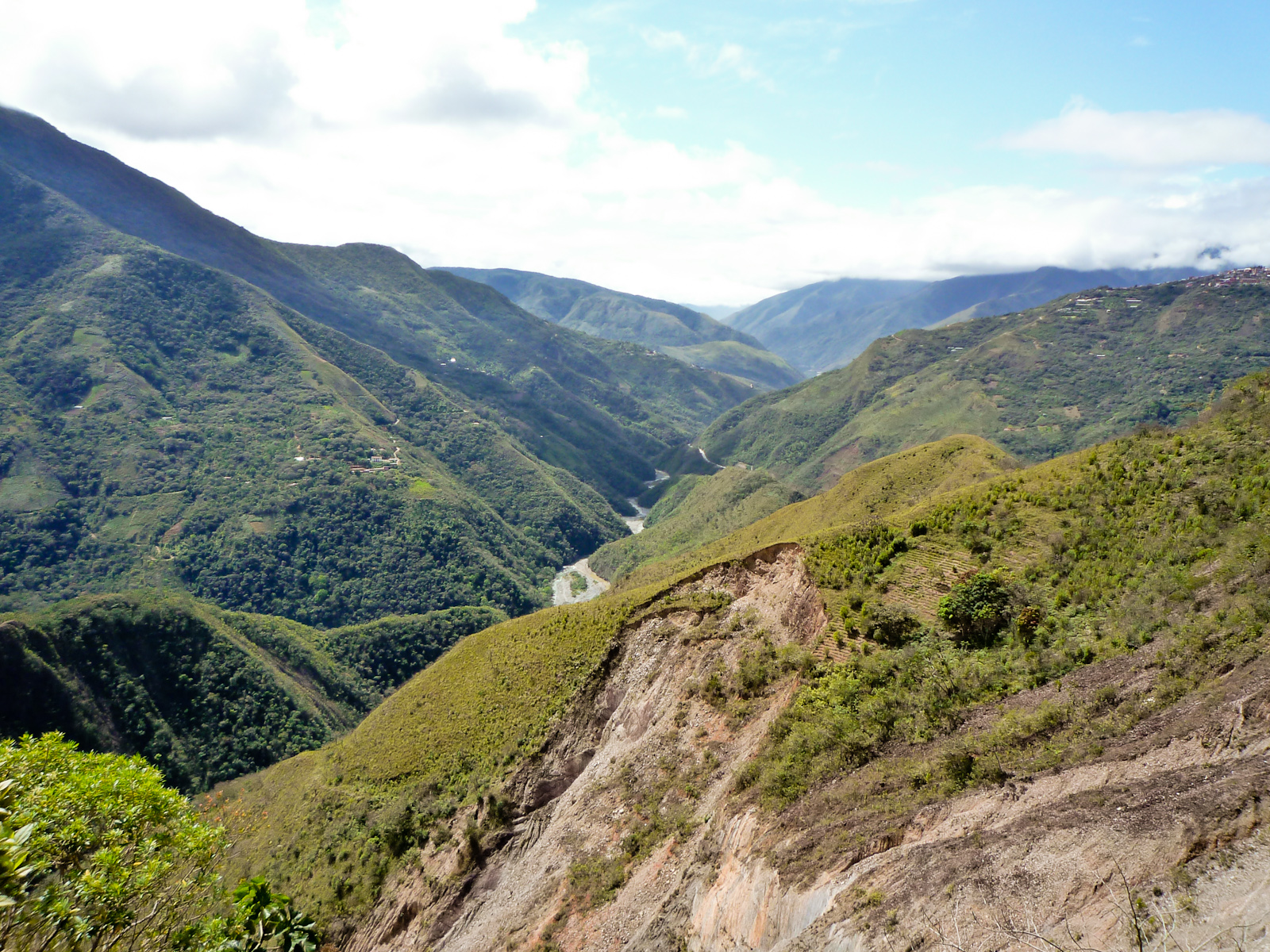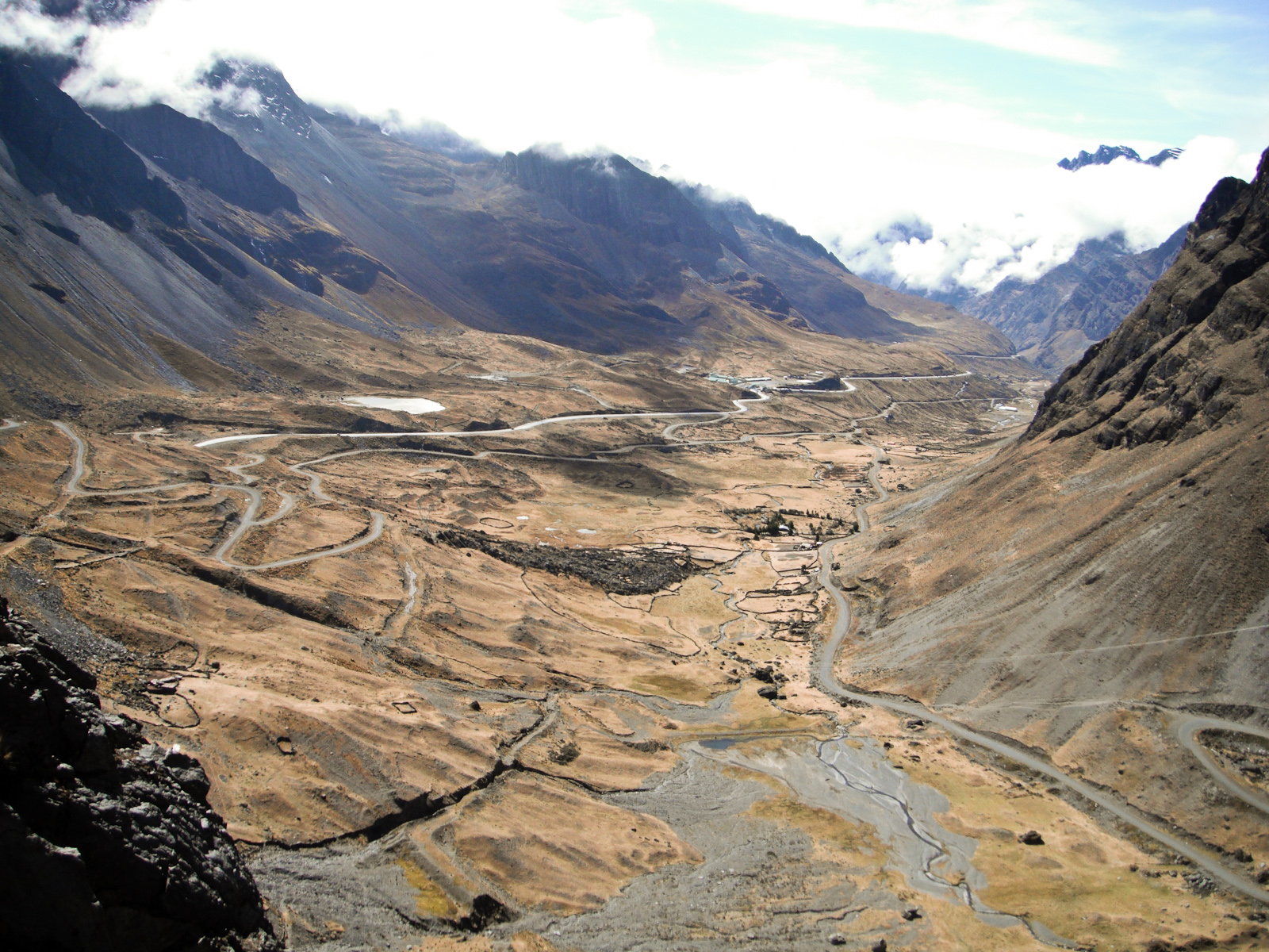 La route - 62 kms en tout - comporte deux sections: une première partie goudronnée d’une vingtaine de kilomètres qui serpente dans la montagne, et la deuxième partie, “le chemin de la mort” à proprement parler, avec cailloux et précipices de 600m juste au bord de la route. C’est impressionnant mais ça n’a rien d’exceptionnel non plus - en y réfléchissant après coup j’ai fait un truc similaire aux Galapagos, mais sans guide… Ceci dit, les paysages étaient sympathiques et on pouvait voir que la végétation aride en altitude laissait place à la jungle au fur et à mesure de la descente.