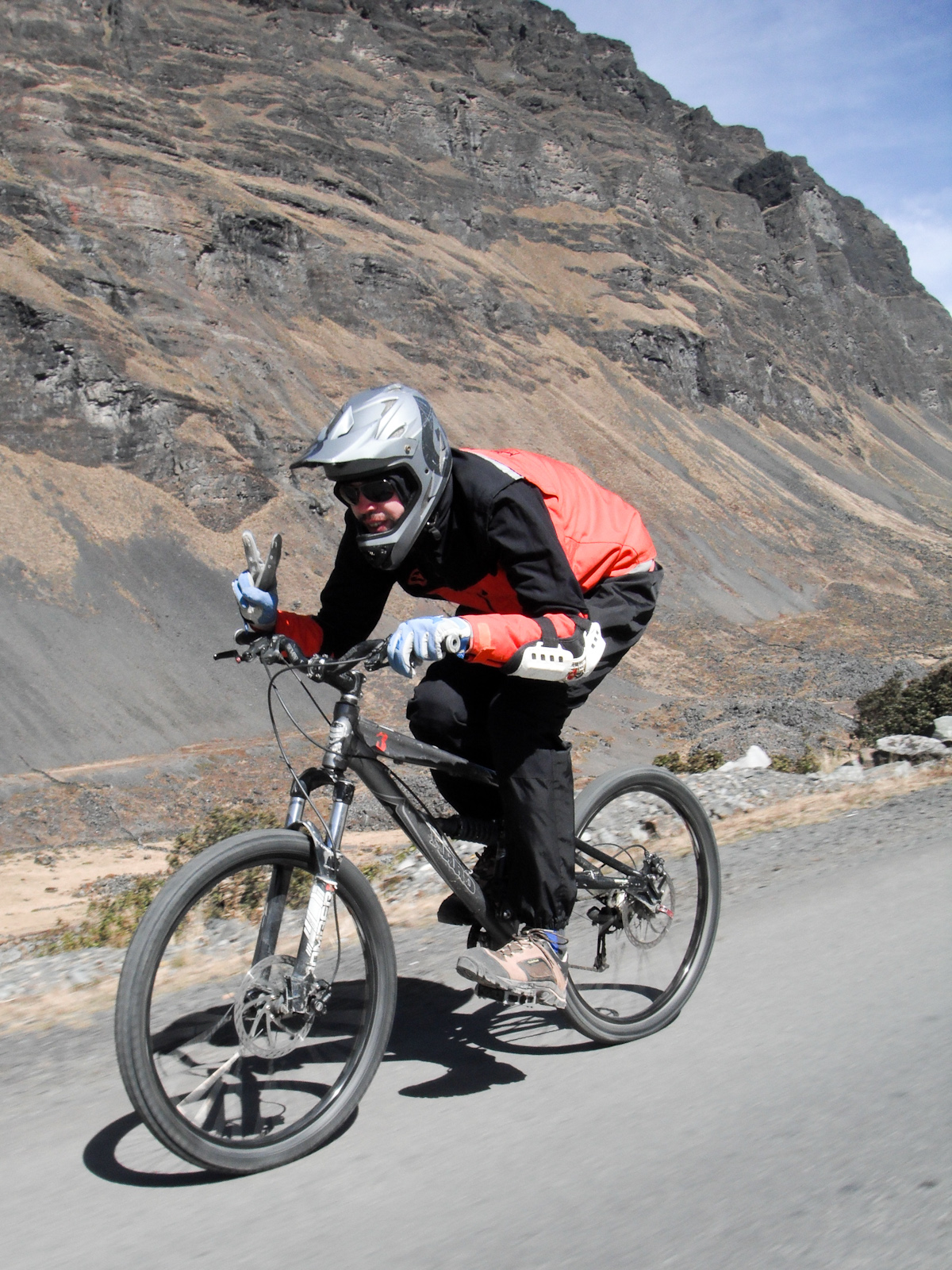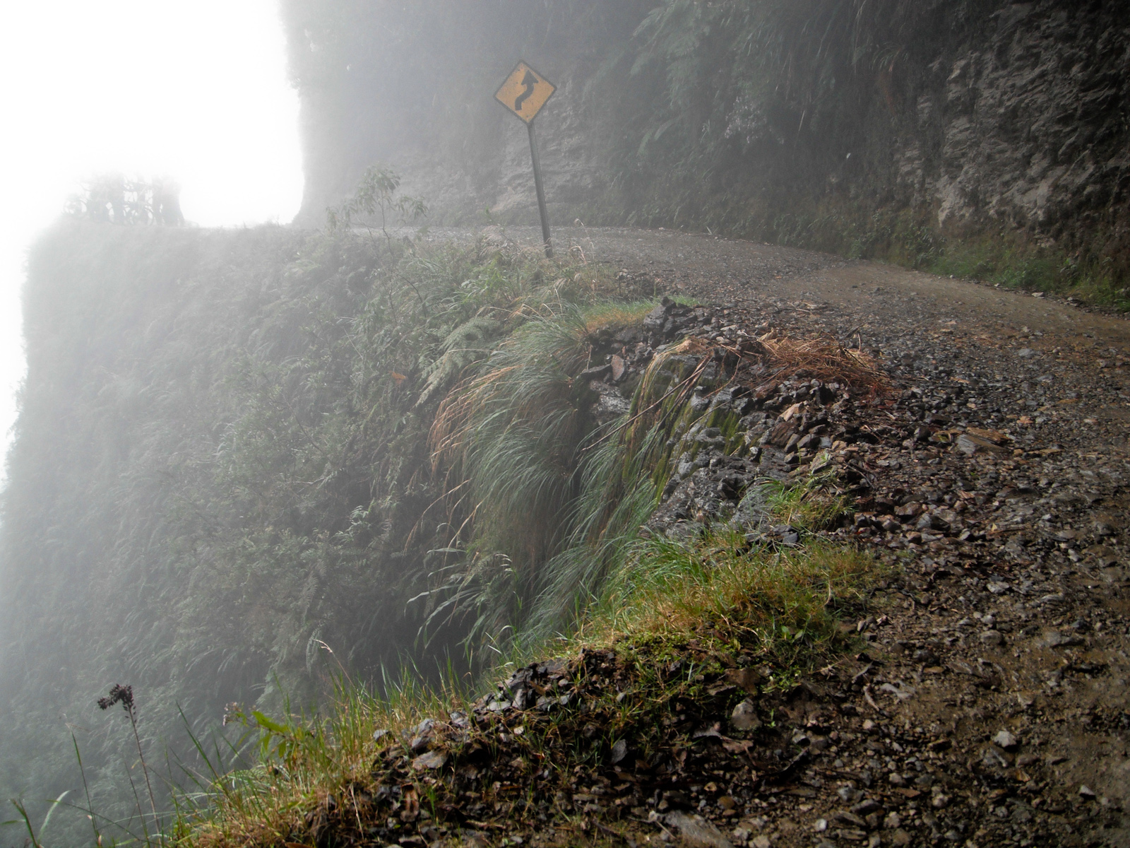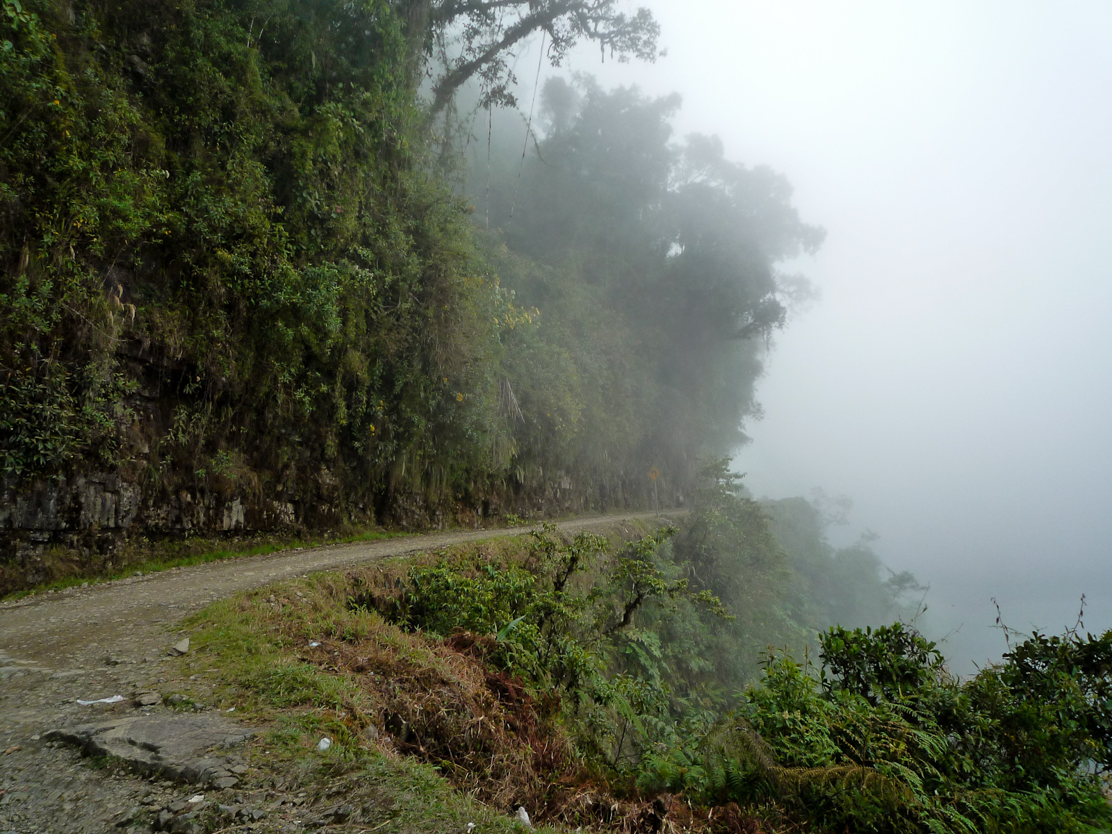 Une autre attraction populaire pour les touristes est de descendre la “route la plus dangereuse du monde”. Elle a été surnommée ainsi parce qu’elle descend plus de 3500m de dénivelé alors qu’elle ne fait que 2m de large, et qu’elle est seulement recouverte de cailloux (et de boue pendant la saison humide). De nombreux accidents ont eu lieu faisant de non moins nombreux morts, jusqu’à ce que les autorités décident de la fermer au trafic routier pour en faire une attraction touristique il y a environ 15 ans. Ça reste quand même dangereux, donc on a pris une agence qui avait l’air respectable, et qui fournit plein de protections, un bon casque, et des vélos avec des freins hydrauliques.