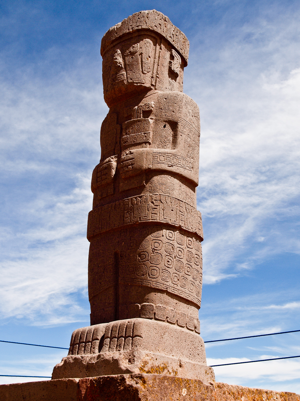 Jusqu’à maintenant, je n’ai pas fait de visite plus lamentable que Tiwanaku (mais heureusement, j’ai encore pas mal de choses à visiter, ce n’est que partie remise). Les bouquins et les archéologues disent qu’on ne sait pas grand chose du site, à part que c’était sûrement la capitale d’une civilisation et probablement un centre de cérémonie aussi. Ça se ressent bien quand on visite l’endroit: alors ben ça c’est une grosse pierre, et ça c’est une statue avec des dessins. Et puis il y a sûrement des tas de trucs cachés sous terre mais on a pas encore eu le temps de faire les excavations alors bon en attendant vous pouvez admirer les brouettes et les ouvriers qui ont l’air de bien se marrer en regardant passer les touristes.