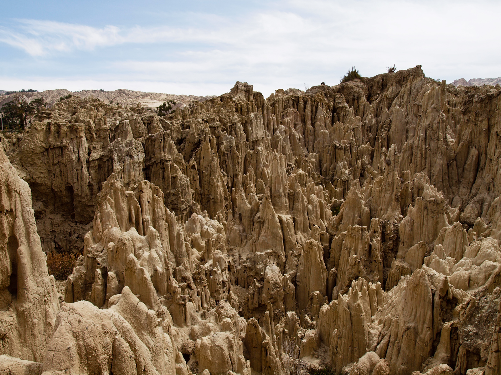 Une grande partie des montagnes entourant La Paz est constituée d’argile. Dans la vallée de la Lune, à une dizaine de kilomètres du centre, l’érosion et les éléments ont transformé la montagne en une sorte de désert avec plein de stalagmites. J’y suis allé en minibus local, ce qui m’a aussi permis de traverser les quartiers sud de la capitale, où la plupart des gens riches habitent. Contraste saisissant - beaucoup de maisons sont des villas très chic et bien protégées. Le lieu en lui même est assez rapide à visiter, mais la vue est plutôt inhabituelle et c’est très tranquille comparé à l’agitation de la ville.