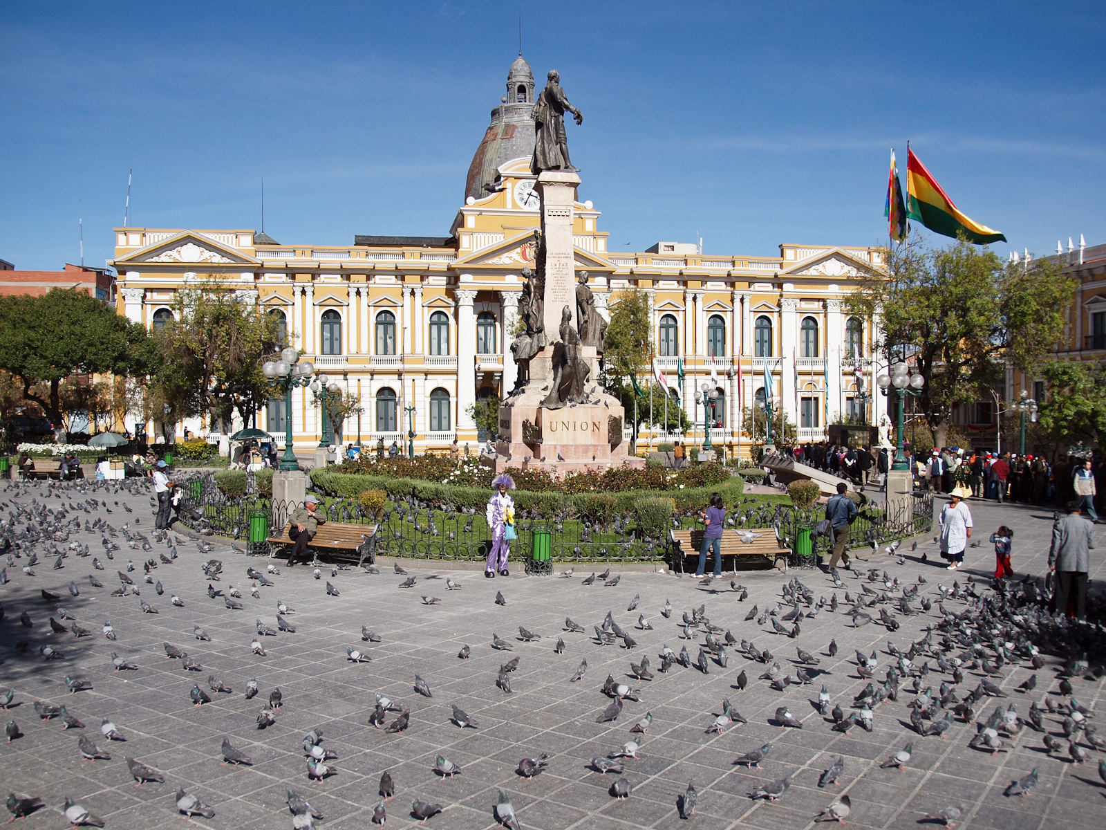 Plaza Murillo. Et, partout autour, les maisons en briques accrochées aux