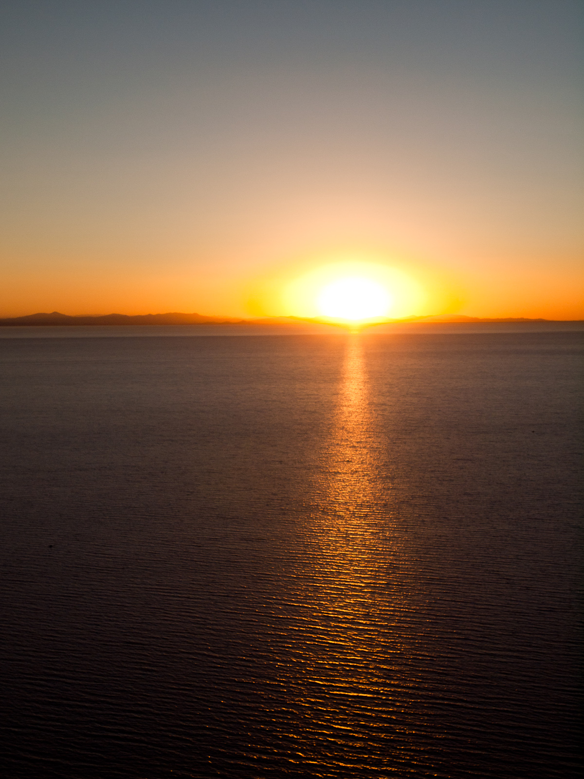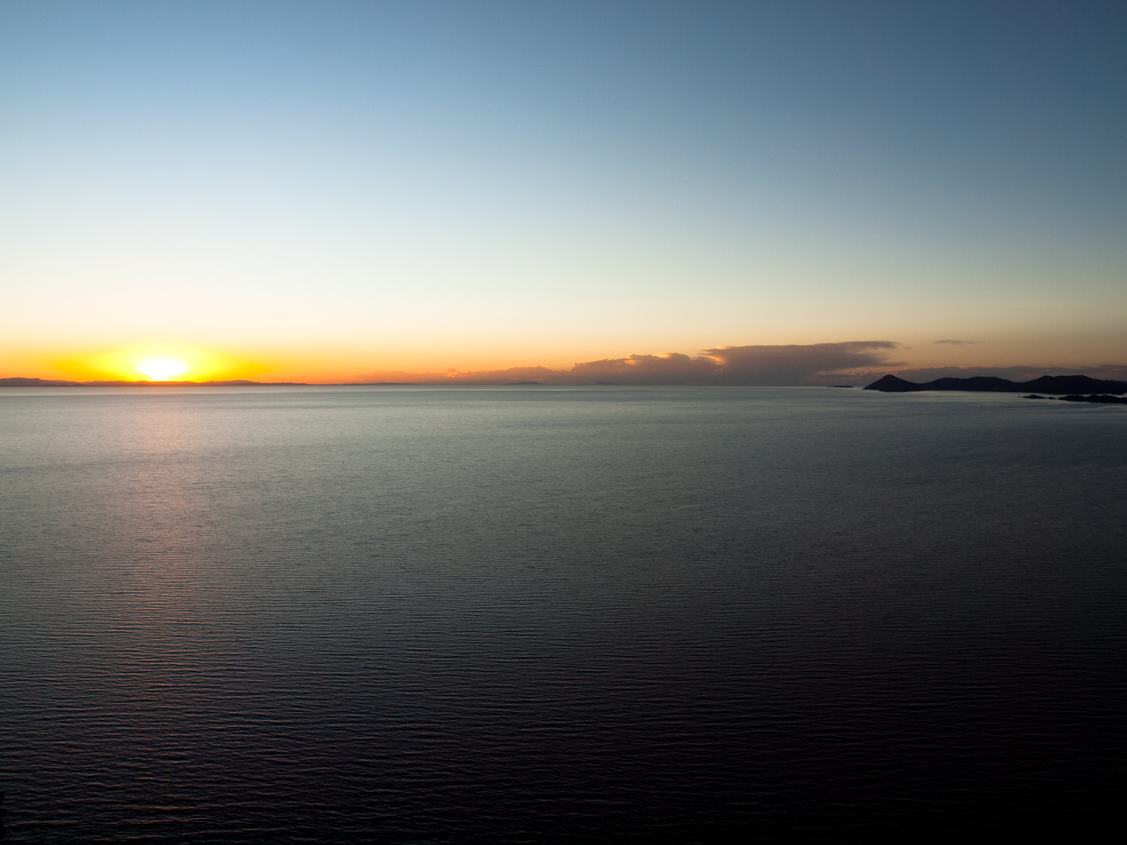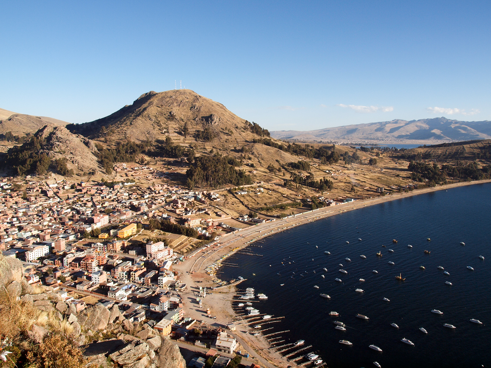 Du coup je pars visiter la ville le coeur léger, notamment l’imposante cathédrale décorée d’azulejos. À presque 4000m d’altitude, le soleil tape dur et le moindre effort est plutôt fatigant, ce qui fait que tout est plutôt tranquille. Le bord de lac est aussi très sympathique, et on se croirait presque dans une station balnéaire. En fin d’après midi, je grimpe en haut d’une petite montagne pour avoir une belle vue sur les alentours. Moi qui suis amateur de grands espaces et de couchers de soleil, je suis doublement servi. J’ai passé un très bon moment, presque mystique, devant l’immensité d’eau et le ciel à perte de vue… En tendant l’oreille, on pouvait presque entendre le silence.