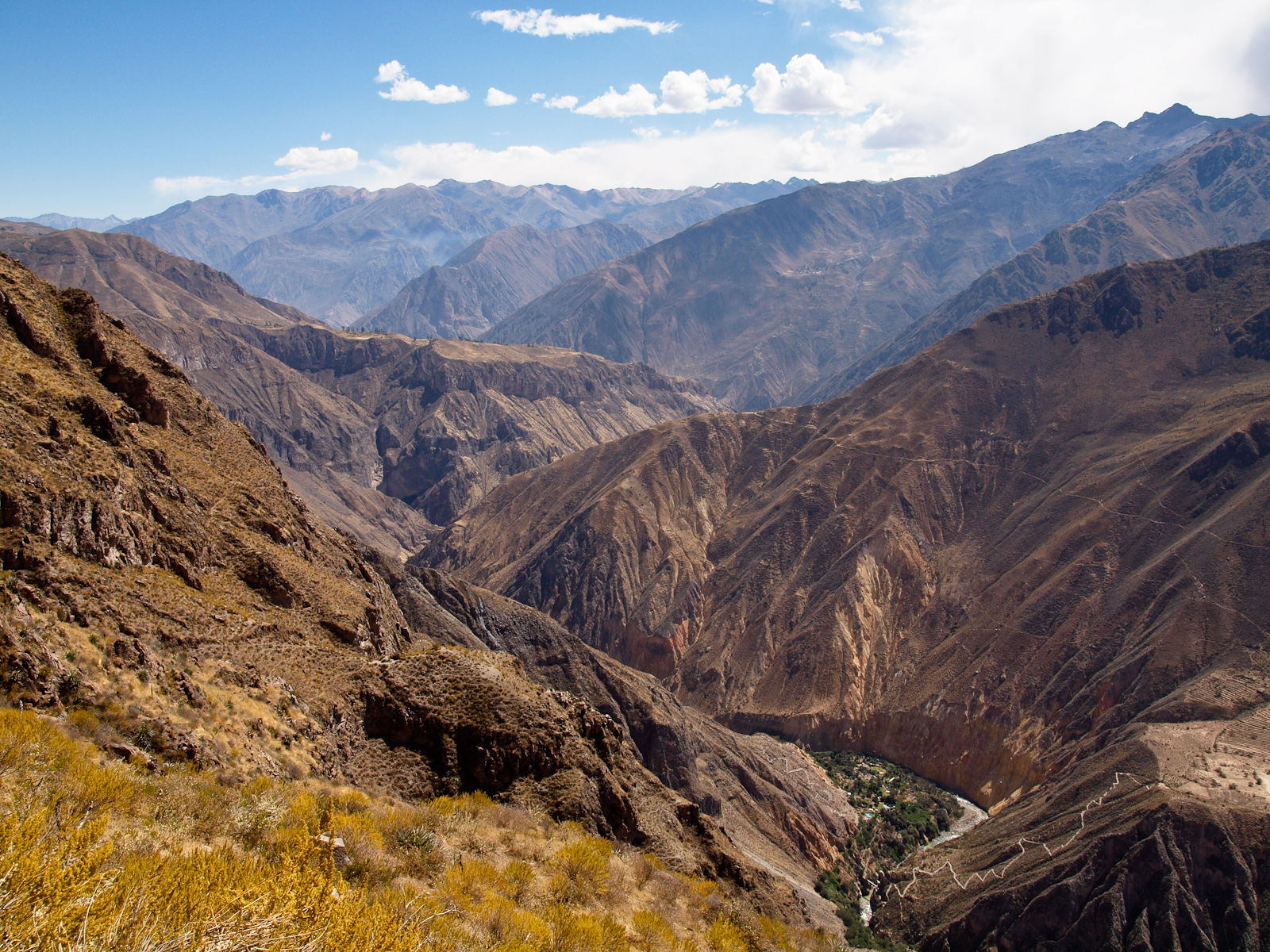 Le Canyon de Colca, situé à environ 200 kilomètres d’Arequipa, est le deuxième canyon le plus profond du monde (plus de 3100m de dénivelé, soit deux fois plus que le Grand Canyon).