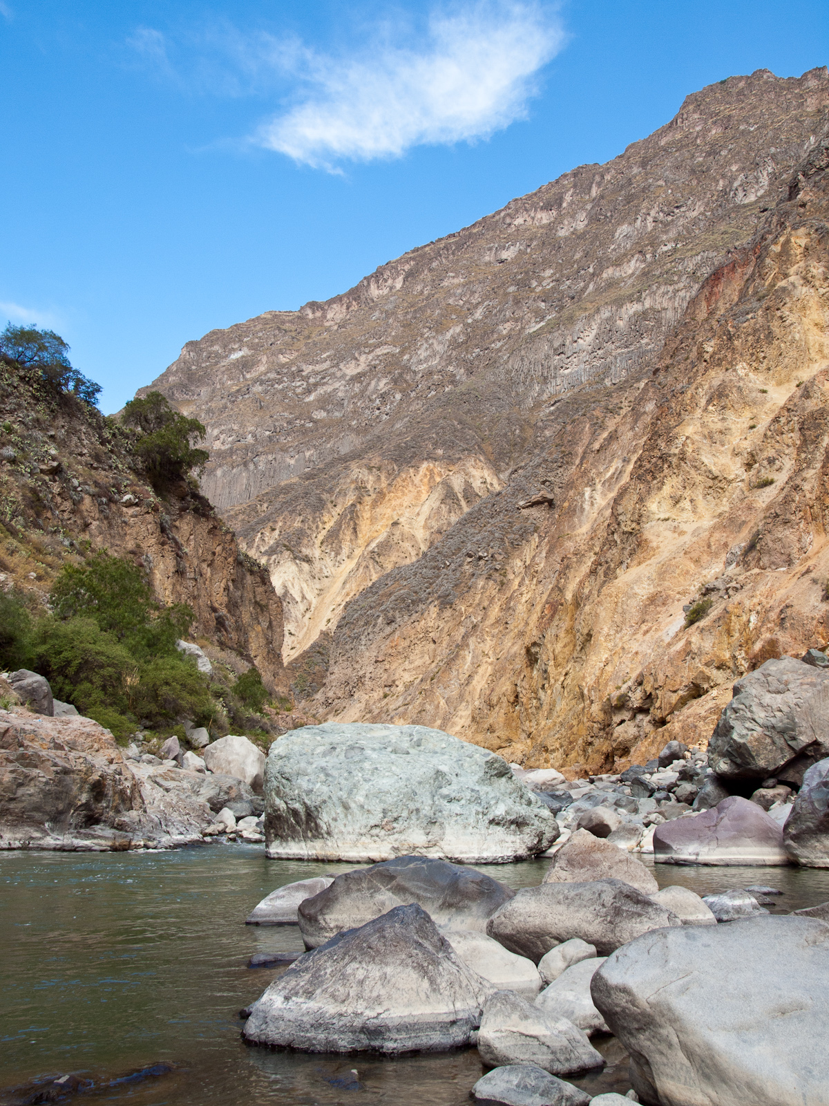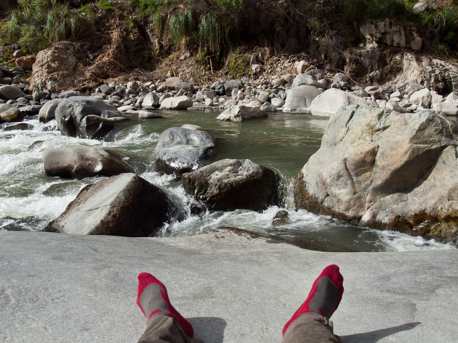 J’arrive au Rio Colca en milieu d’après-midi. L’occasion de se tremper les pieds et les mains dans l’eau fraîche, ça fait du bien :)