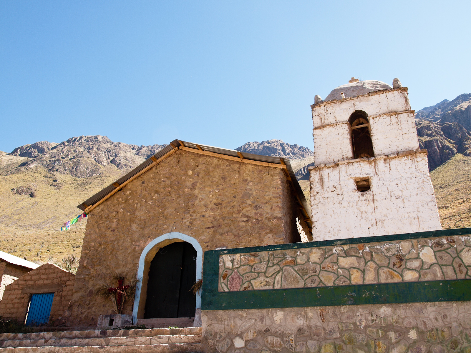 Vers 17h15, alors que le soleil commence à sérieusement décliner, j’aperçois enfin au détour d’un virage l’arrivée tant espérée: Tapay, 2850m d’altitude et 70 habitants. Du coup ce n’est pas très dur de trouver où dormir vu qu’il n’y a qu’une seule auberge qui loue des petites cabines… Tout confort, douche (chaude!) et toilettes dans le poulailler à 50m des bungalows (et au vu de la température extérieure la nuit, vaut mieux s’assurer qu’on a la vessie vide avant d’aller se coucher, si vous voyez ce que je veux dire). Comme j’ai vu plein de petits lamas tous mignons sur la route, je prends un steak d’alpaca au dîner, et à 21h je suis couché. Je suis censé être seul dans mon bungalow, mais je dois quand même le partager avec une souris qui semble en vouloir à mes biscuits - ça me rappelle des souvenirs d’Amsterdam :)