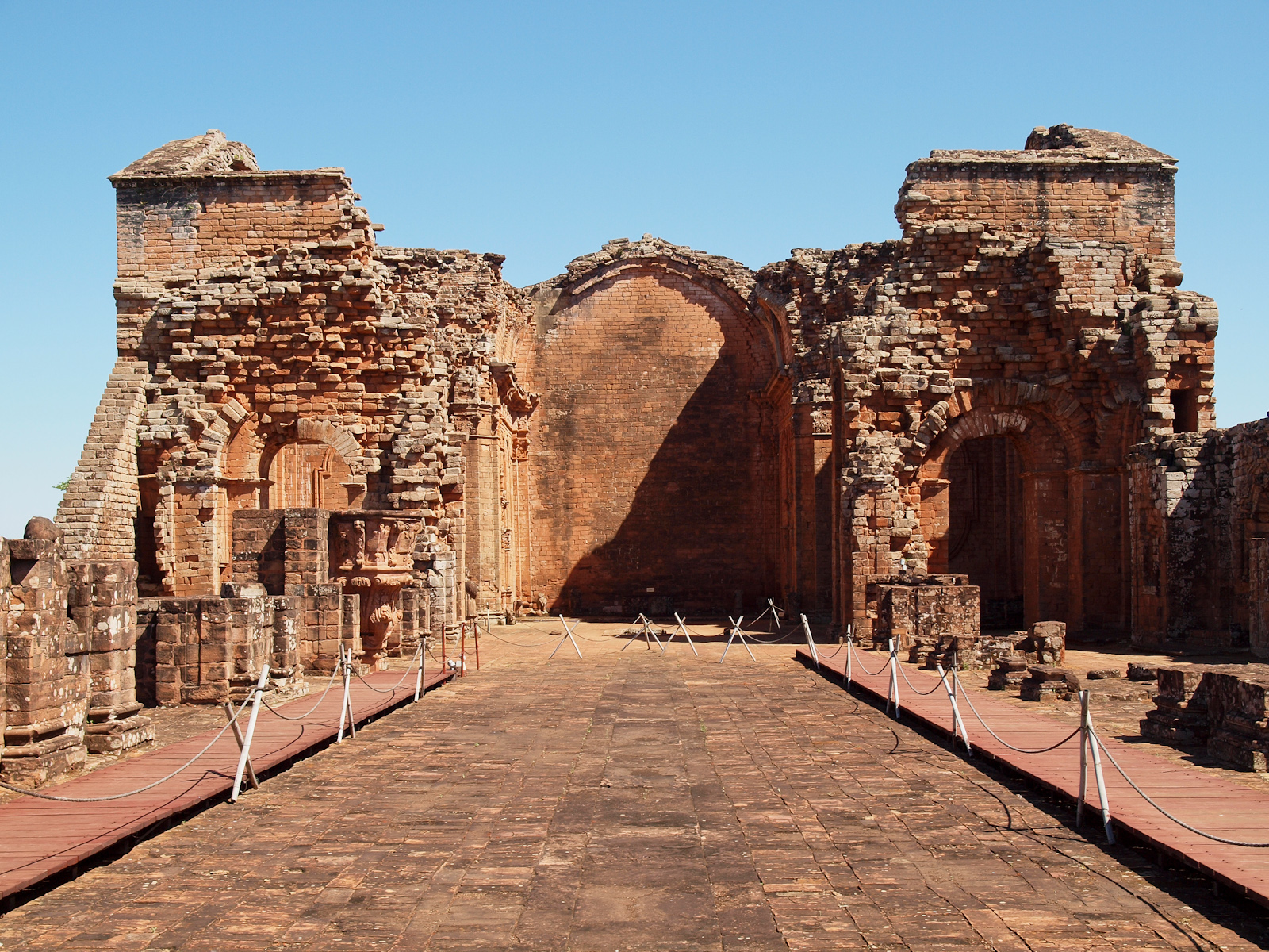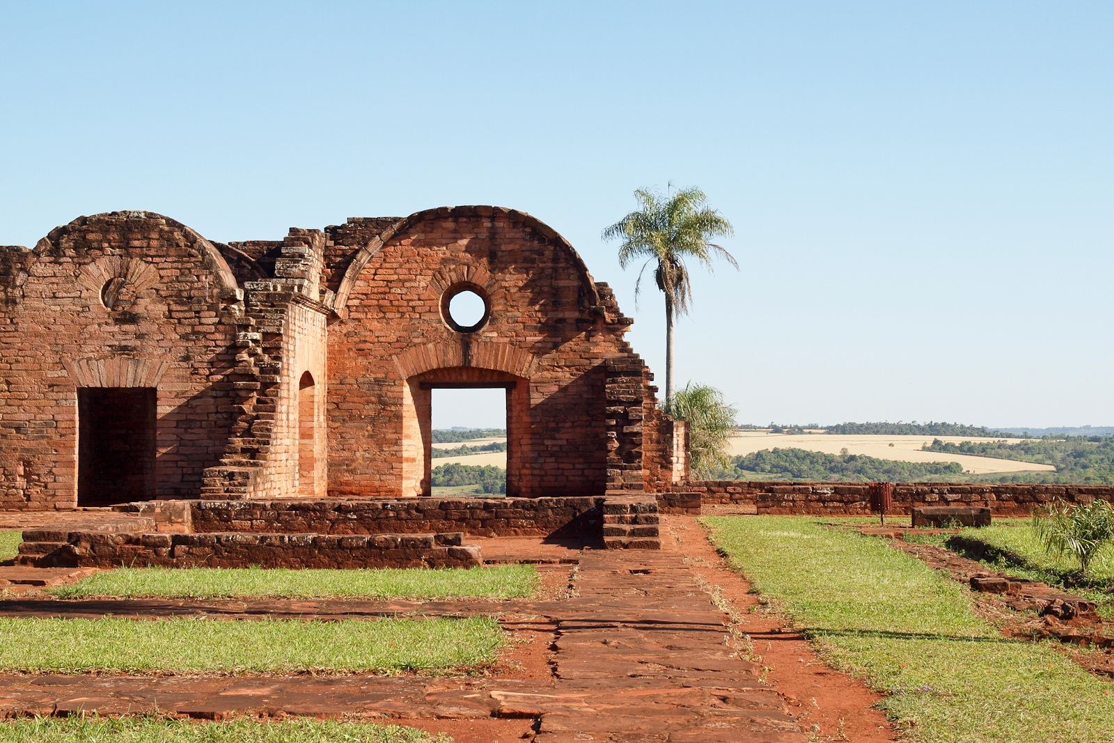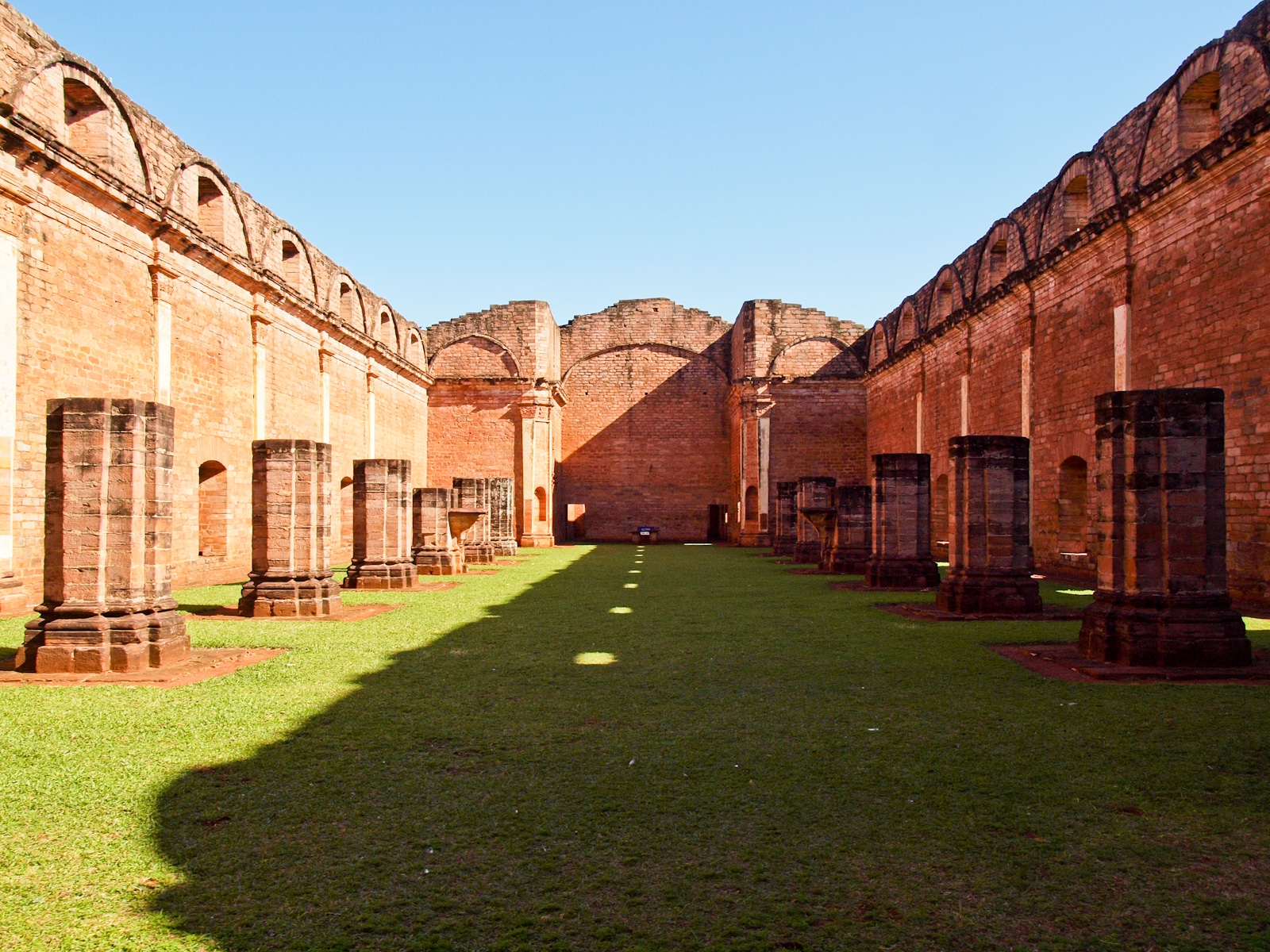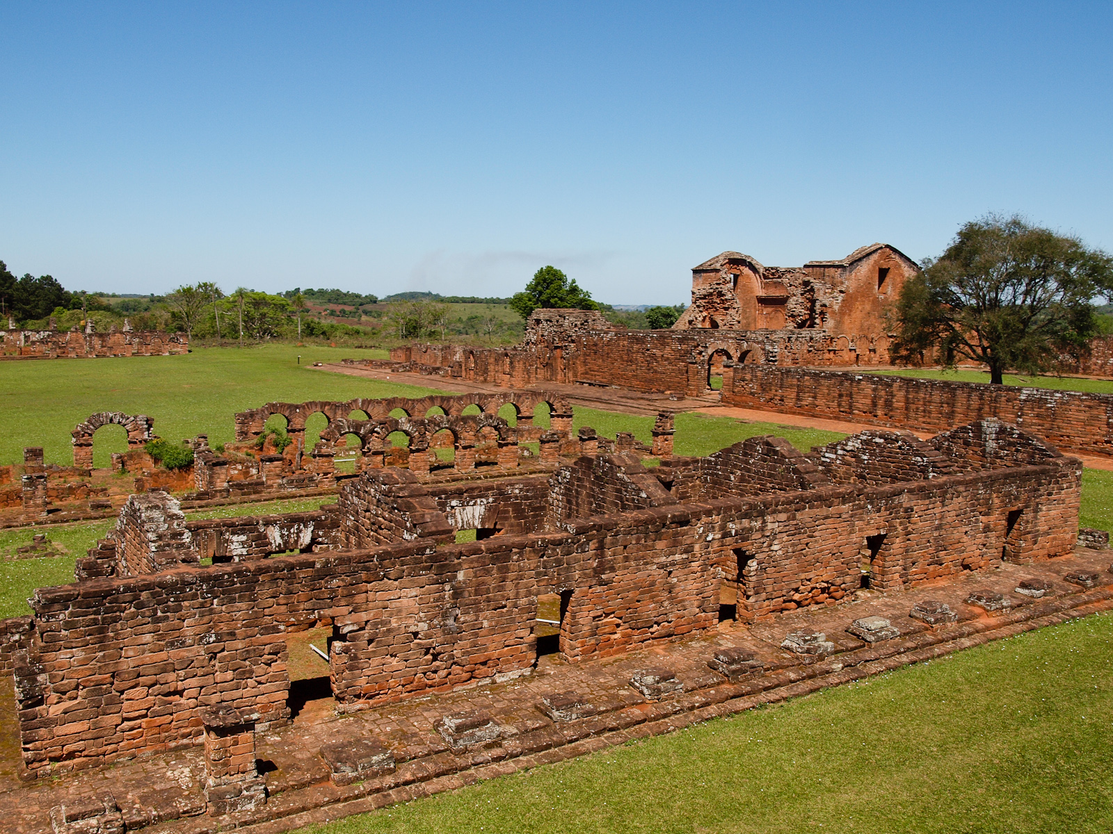 La mission en elle-même est aussi impressionnante. Fondée en 1706, elle a compté à son apogée plus de 3000 habitants, qui étaient des indigènes guaranis recrutés par les missionnaires. Elle a été construite comme un petit village, capable de survivre en auto-suffisance: un temple, une église, des logements, des ateliers, des champs… et même un campanile en hauteur pour communiquer avec les autres missions situées autour (parfois à plusieurs dizaines de kilomètres). La mission de Trinidad est considérée comme une des mieux conservées et est au patrimoine mondial de l’Humanité.