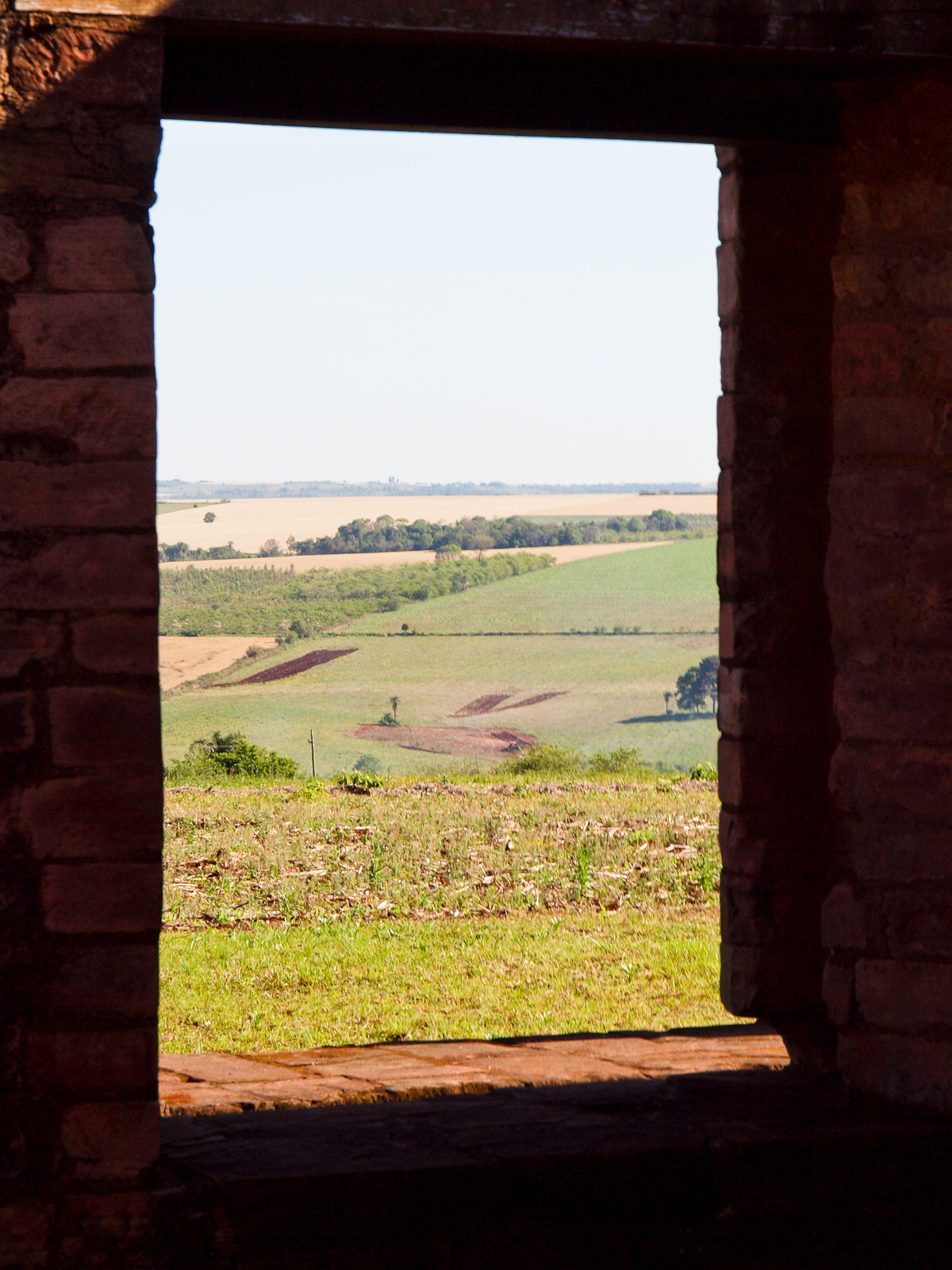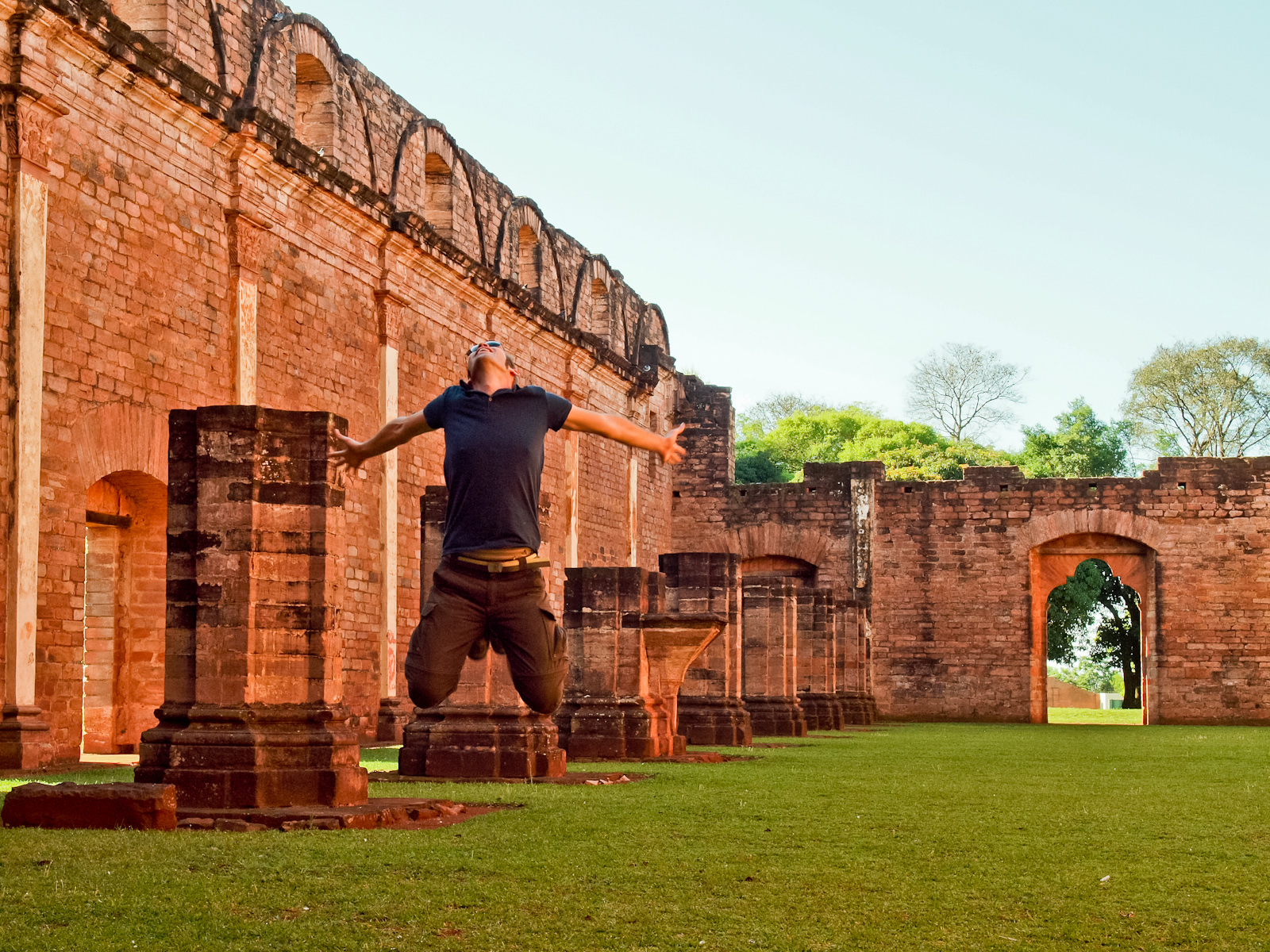 Alors après j’ai visité les ruines de la mission de Jésus, et j’ai compris pourquoi ils disent que celle de Trinidad est la mieux conservée… il n’en reste pas grand chose, donc j’en fais vite le tour. Du coup je peux prendre des photos débiles, profiter de l’extrême tranquillité du village de Tavarangué et de l’ombre de son “terminal de bus”…