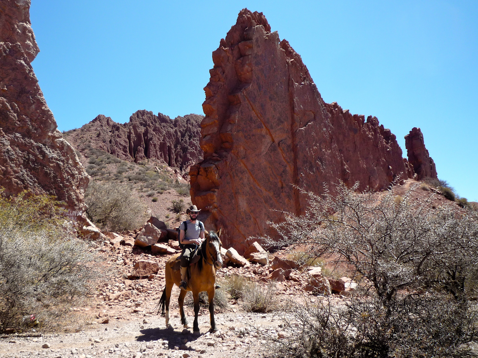 Le lendemain matin, je pars faire le tour des agences pour organiser mon excursion dans le salar. En chemin je rencontre un Anglais et deux Françaises qui cherchent un quatrième larron pour partir faire ce qu’on appelle ici le triathlon: une journée complète avec cheval, randonnée et vélo en montagne… Et comme je n’ai rien d’autre à faire que d’attendre le soir pour savoir si mon groupe de 4x4 est complet pour partir, je me lance et je m’inscris, pas très rassuré tout de même. Je me souviens être monté deux fois sur un équidé: une fois il y a probablement plus de 20 ans, et c’était un poney. La deuxième fois c’était l’année dernière dans un square en Russie, j’étais bourré et je pense que le cheval aussi. Ca promet.