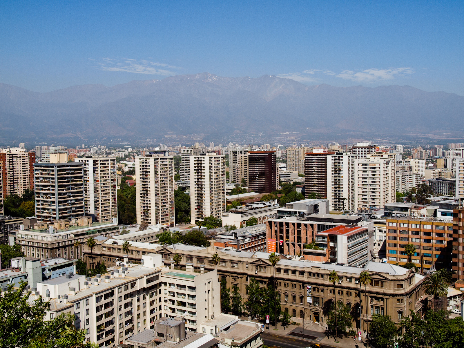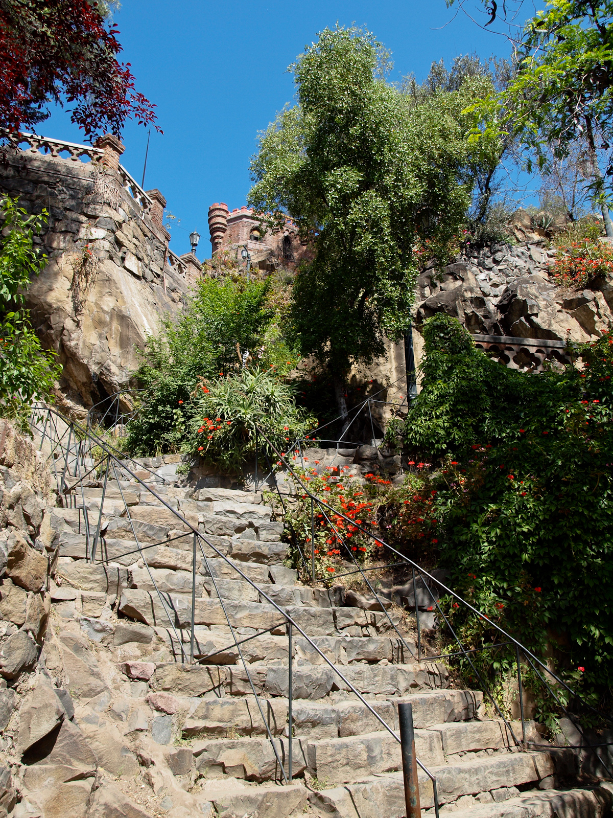 En plein centre il y a aussi le Cerro Santa Lucia, une petite colline aménagée en parc naturel, avec un jardin et un château en ruines d’où on a une belle vue sur la ville et les alentours. Les Andes semblent flotter au-dessus du brouillard (de pollution, chaleur et poussière) classique à Santiago.