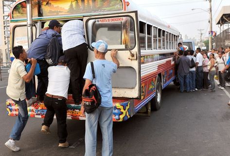 Panama est très congestionnée et les embouteillages sont légion. Il n’y a que des bus - même s’il y a un projet de métro - et à part ça, les taxis (souvent partagés). Un petit mot sur les bus de ville: ce sont des chicken bus , des anciens bus scolaires américains déclassés qui finissent souvent leur carrière en Amérique Centrale. À Panama ils sont appelés les diablos rojos (diables rouges). Leur décoration est exubérante et dépend de la ’ligne’ qu’on emprunte. Évidemment ils sont complètement défoncés, il n’y a pas la clim, et ce sont toujours les sièges d’origine conçus pour des enfants ou au plus des adolescents. Autant dire que c’est le bordel et qu’ils sont souvent archi- pleins. Les autorités ont lancé un vaste projet de mise à jour du réseau et maintenant des Metrobus circulent - ils sont modernes et remplacent les anciens bus petit à petit (avec plus ou moins de succès…). Quelques photos (pas de moi) pour vous donner une idée: