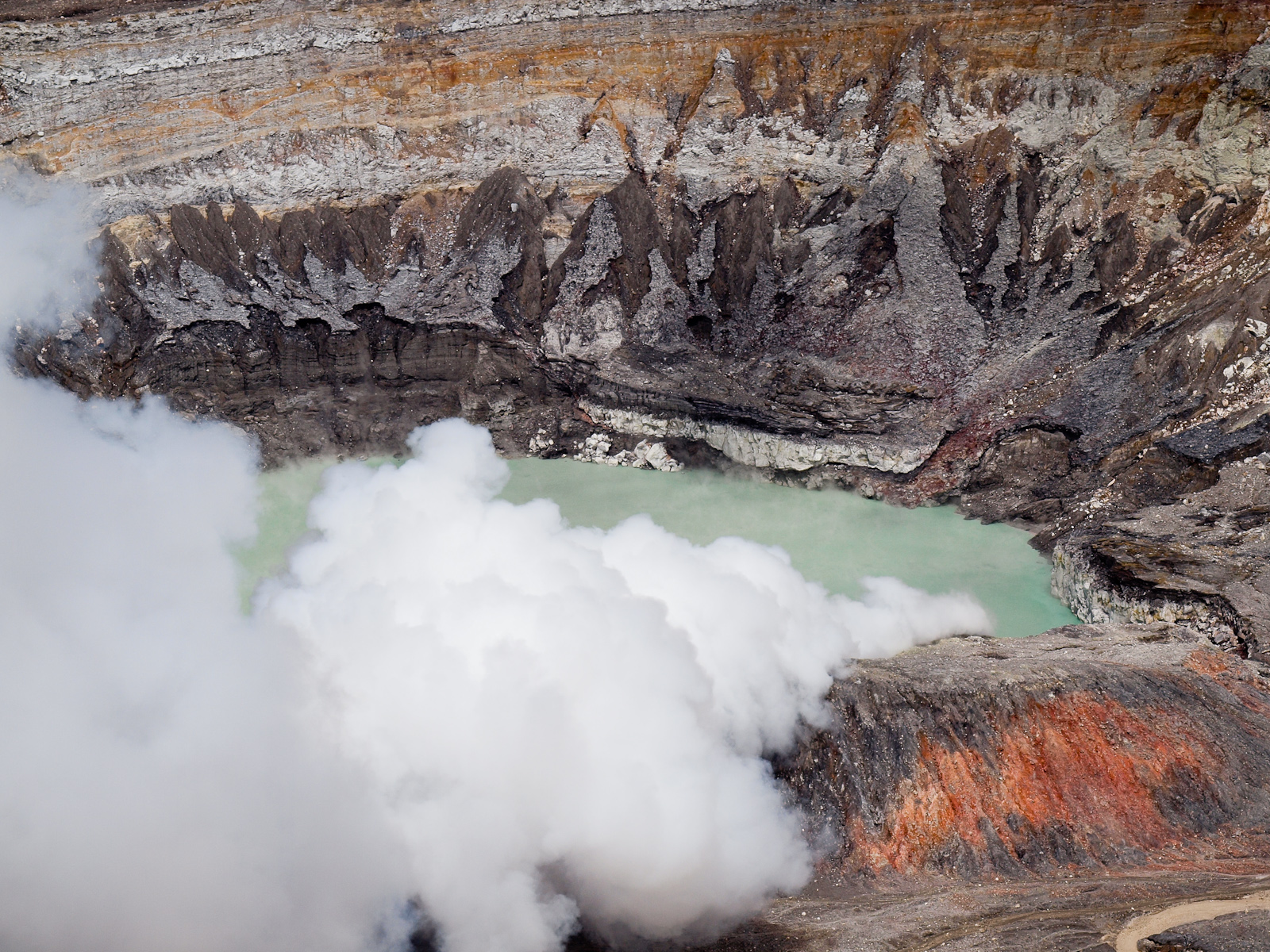 Le jour suivant, je décide de partir visiter le volcan Poás. Il offre l’avantage d’être toujours actif, et d’avoir un cratère facilement accessible (un peu de bus + quelques minutes de marche). Pas de chance, j’ai oublié que c’était dimanche aujourd’hui. Il y a là un paquet de Ticos en folie et un autre paquet de touristes - c’est carrément l’embouteillage pour accéder à l’entrée…