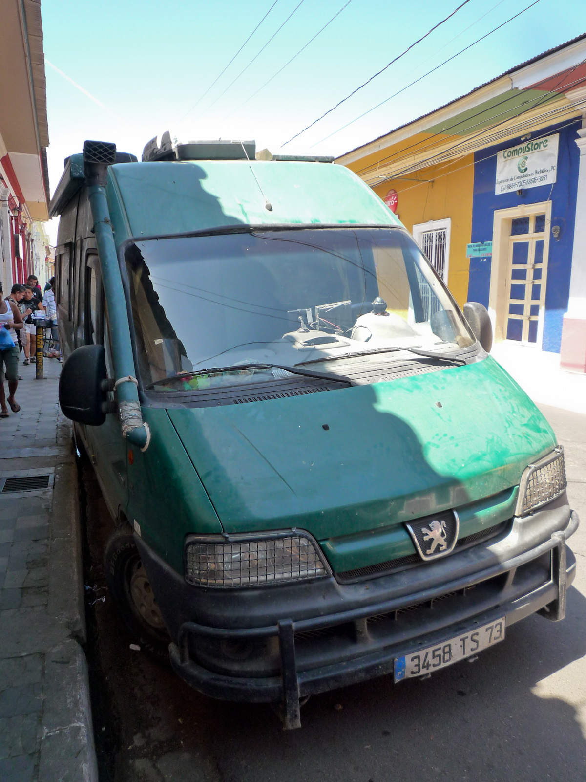 Histoire de changer, je quitte l’île d’Ometepe sur un vrai ferry - avec la clim’, un snack-bar et une télé qui passe des films avec Jean-Claude Van Damme. Et aussi des camions et des voitures… dont un camping-car et un 4x4 immatriculés en France.