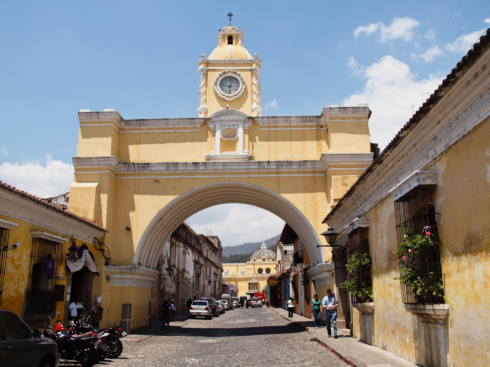 Ambiance ghetto à la traversée de Guatemala City, avec une rue barrée par la police et les ambulances avec vraisemblablement un mort dedans… C’est apparemment le lot quotidien de la violence dans la capitale, qui semble cependant se maintenir entre les locaux (règlements de compte et gangs). On arrive en début de soirée à Antigua, et l’ambiance est nettement plus relax :)