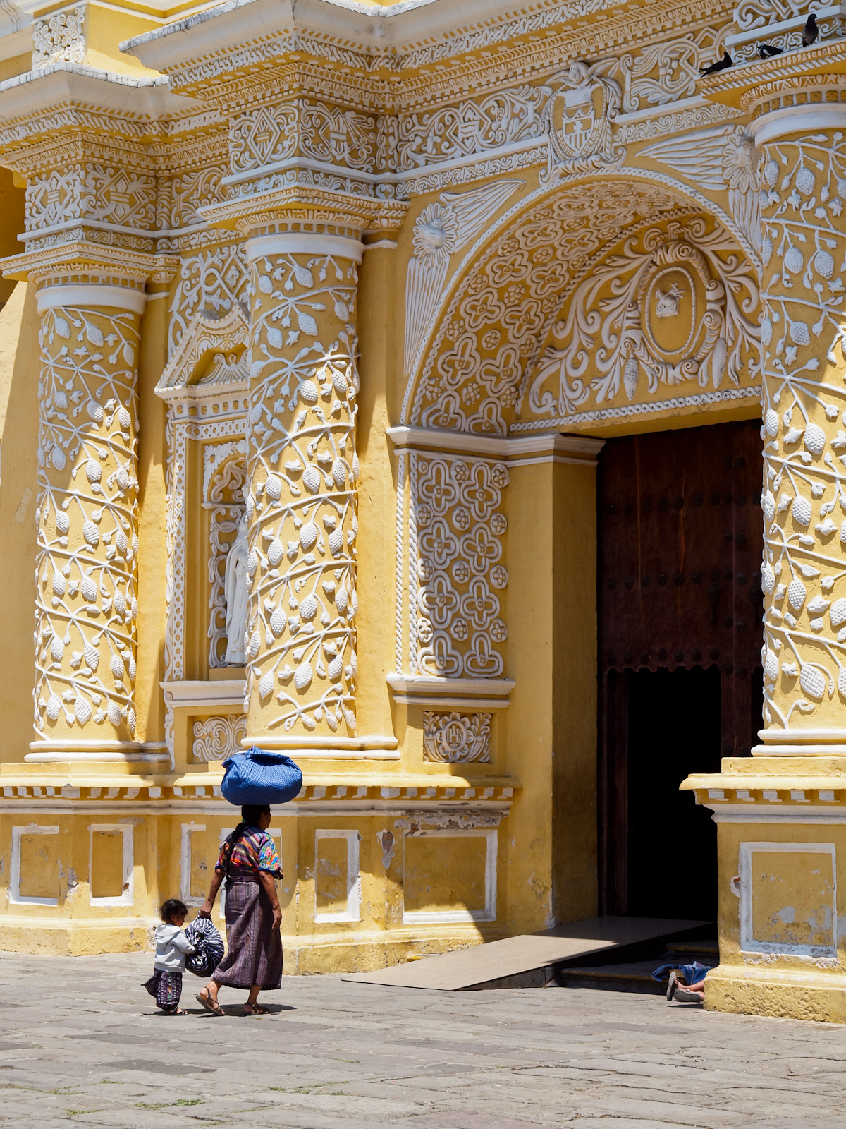 L’atmosphère est quand même particulière, très coloniale bien sûr avec de nombreux bâtiments en ruine. Antigua Guatemala (le nom complet de la ville) est entourée de volcans que l’on peut voir d’à peu près n’importe où en ville. Et les costumes sont aussi de nouveau de sortie: beaucoup de femmes portent l’habit traditionnel - tout ça me rappelle beaucoup la Bolivie!