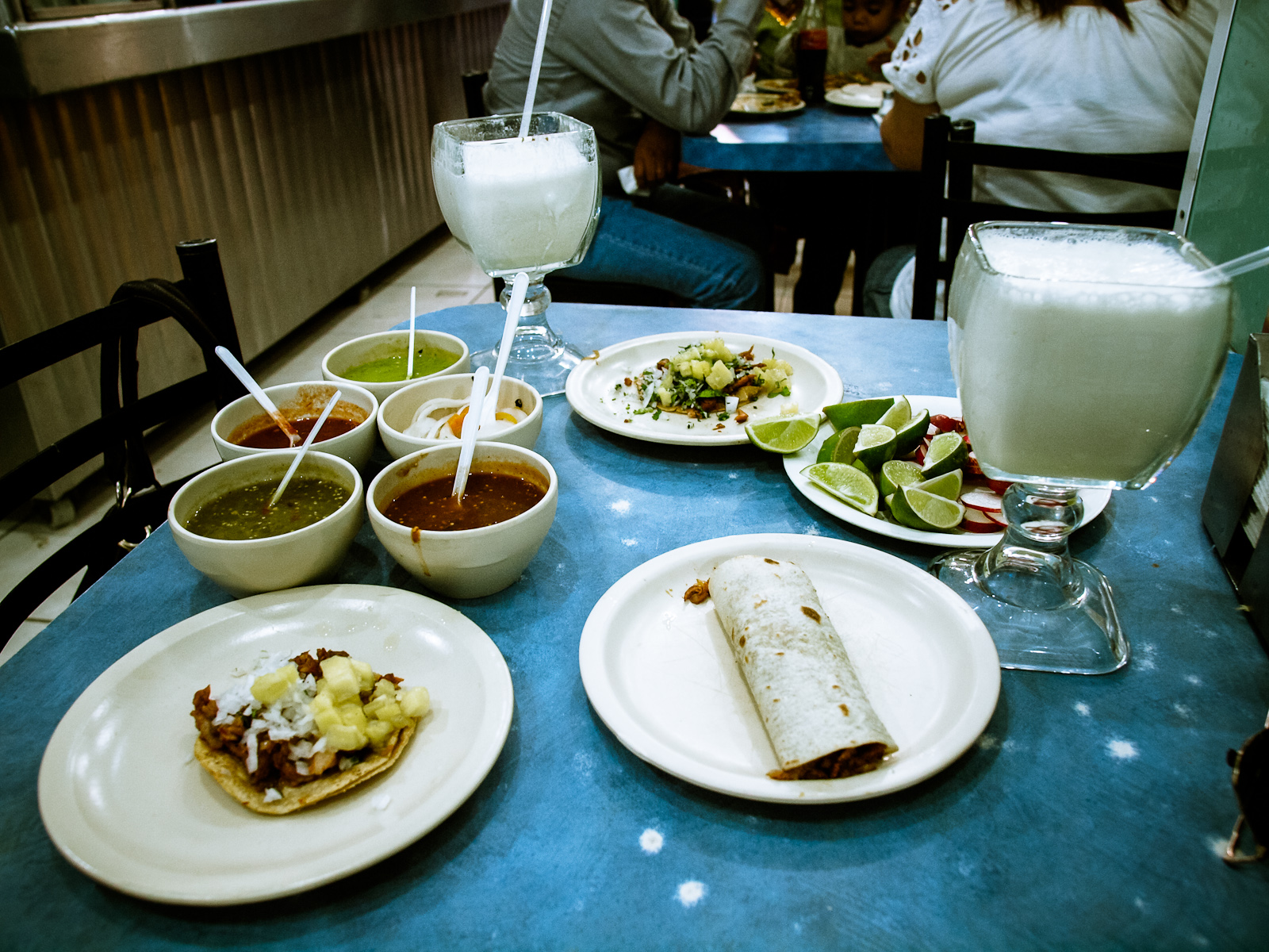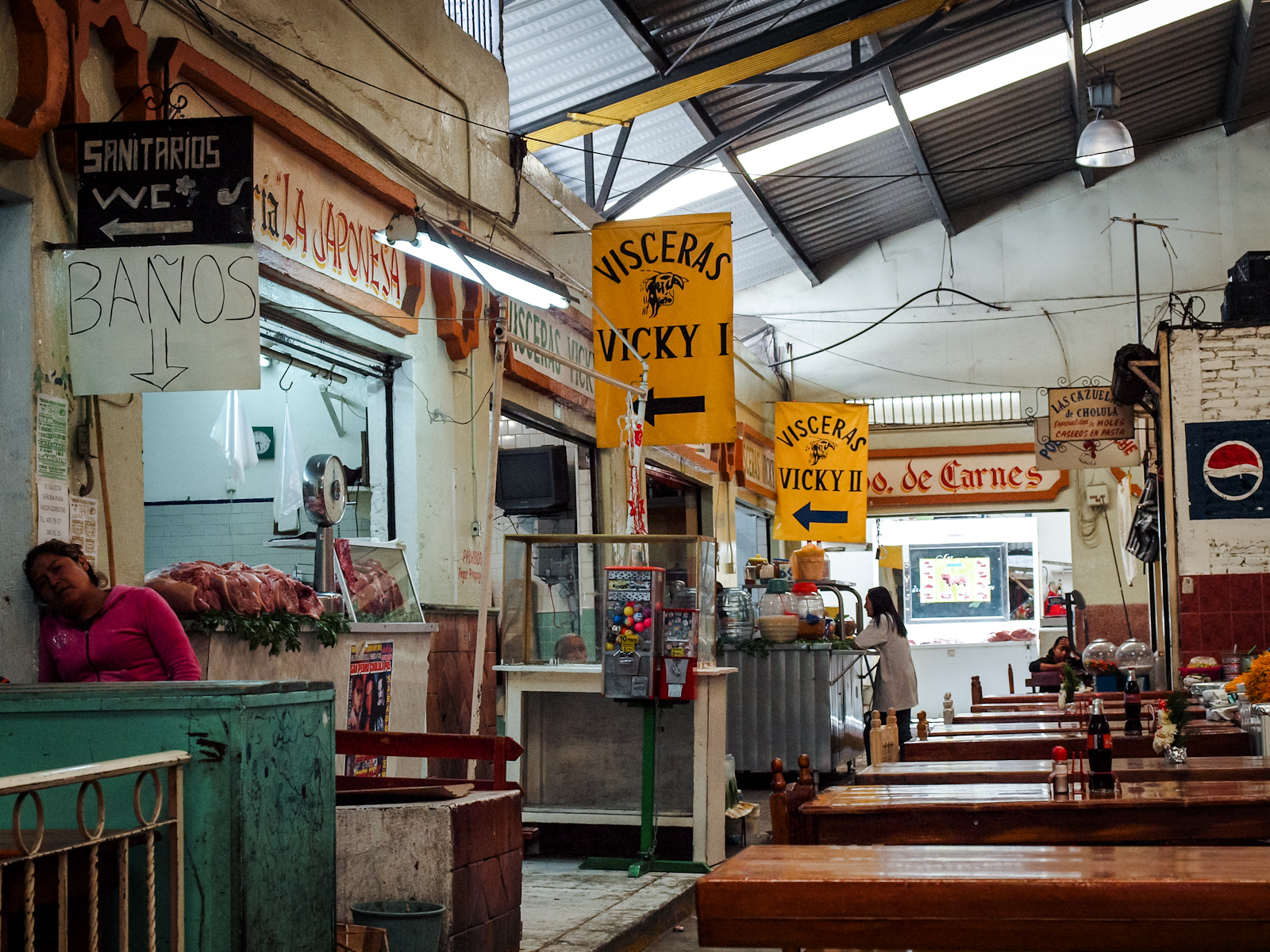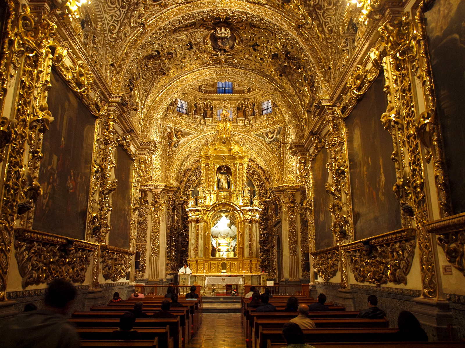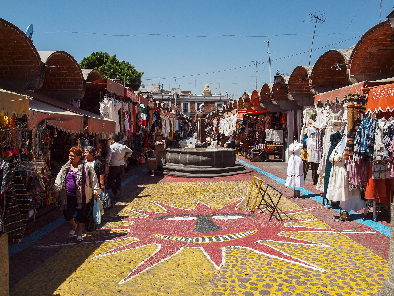 Puebla est, comme souvent au Mexique, une ville coloniale avec des églises de partout. Et une cathédrale très imposante aussi avec une chapelle entièrement recouverte de feuilles d’or, tant qu’à faire. C’est sympathique mais au bout d’un an je commence à en avoir un peu marre des bâtiments coloniaux donc je vais passer outre pour cette fois - et plutôt vous faire partager les moments culinaires dans les marchés et les petites échoppes, où on a dégusté des tacos, memelas, tortas, tostadas, pipían, moles et autres tlacoyos… Le tout souvent arrosé de bière ou de tequila, histoire de faire passer le fait que ça arrache quand même sévère.