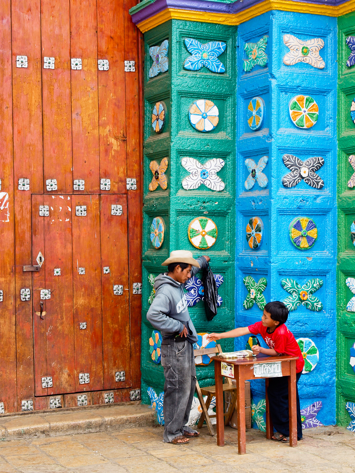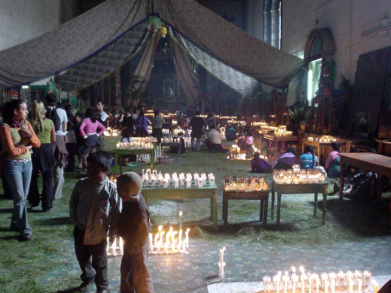 Étape incontournable dans le coin, le village de San Juan Machula, connu pour sa jolie église. Mais le plus intéressant c’est ce qui se passe à l’intérieur: les locaux ont joyeusement mélangé leurs traditions ancestrales avec le catholicisme. Le sol est recouvert d’épines de pin, et il y a une forte odeur d’encens. À travers la fumée on voit la lumière des centaines de bougies installées au sol pour dessiner des motifs particuliers. Il y a plusieurs petits groupes, assis à même le sol, à côté de leurs bougies et de quelques canettes de soda. Souvent un vieux monsieur ou une vieille dame murmurent des trucs, certains en secouant des poulets (certains morts) au-dessus des gens, d’autres en imposant leurs mains… Spectacle curieux et parfois un peu dérangeant. Photos interdites à l’intérieur, mais ça se trouve facilement sur Google Images (ici par exemple).