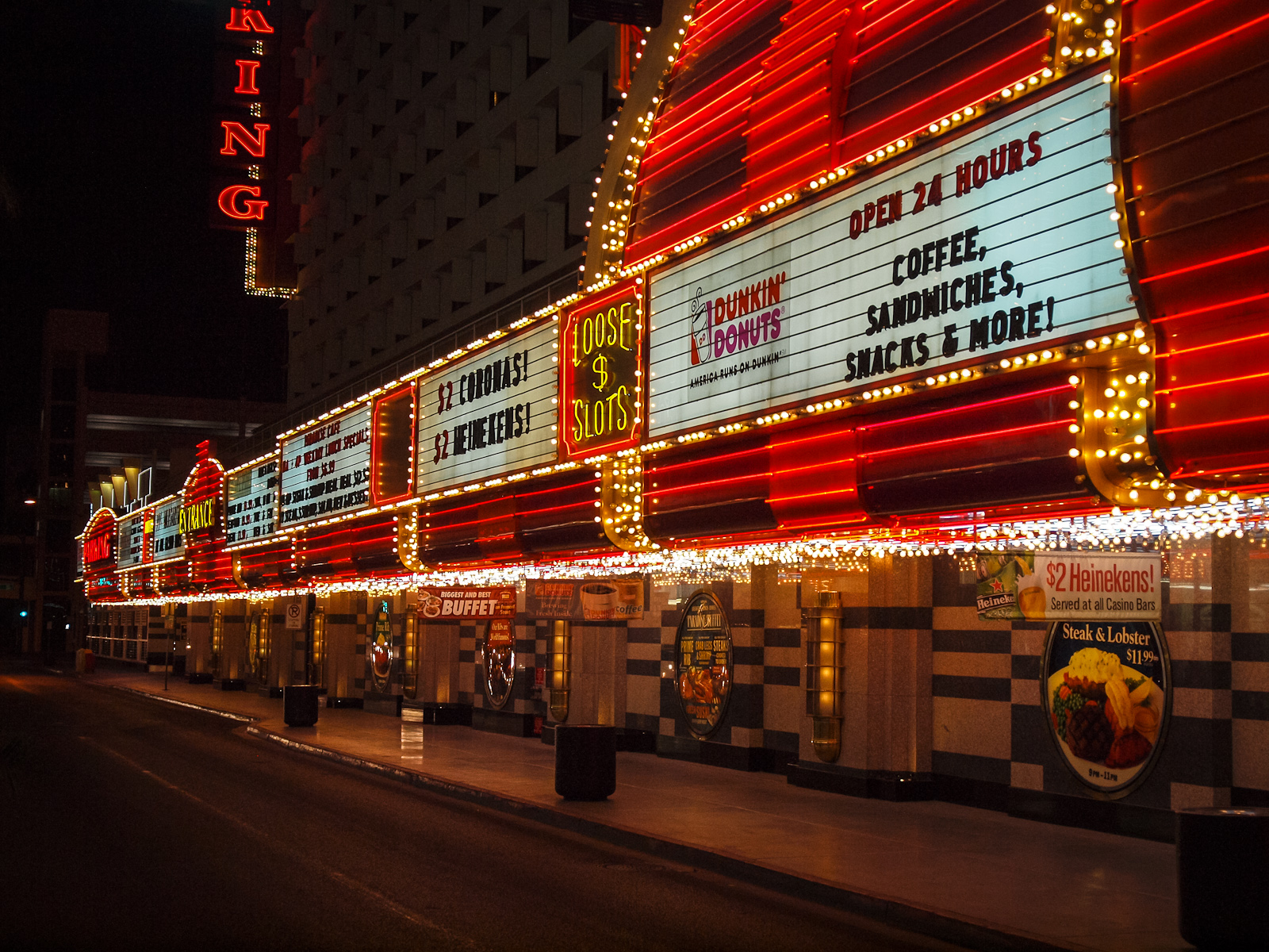 Je ne peux pas m’empêcher de remonter le Strip de nuit malgré les embouteillages. Des casinos et des néons partout, on pourrait presque éteindre les phares que ça ne ferait pas beaucoup de différence. Je n’ai pas de réservation alors je ne me sais pas trop où m’arrêter… Je suis presque arrivé au bout et je vois plus loin le “Circus Circus”, dont j’avais vaguement entendu parler. Du coup je me la joue freestyle, je me gare devant et demande une chambre - qui ne se trouve être pas trop chère - et voilà, je suis installé. Bon il faut prendre la voiture pour aller à la réception mais c’est pas mal quand même.