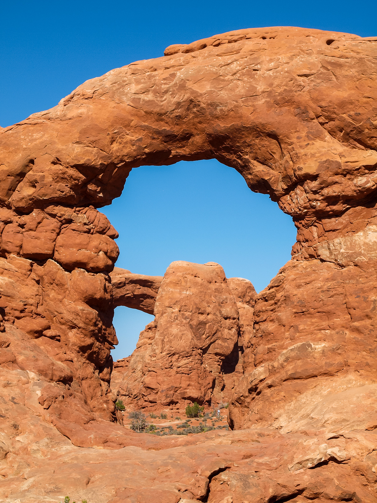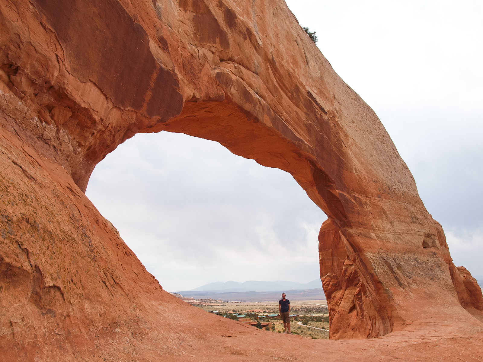 Après un bon paquet d’heures, j’arrive enfin à Moab, Utah. Ou plus exactement, je m’arrête avant au parc national Arches, dont le nom explique assez bien ce qu’on peut y trouver: des arches rocheuses.