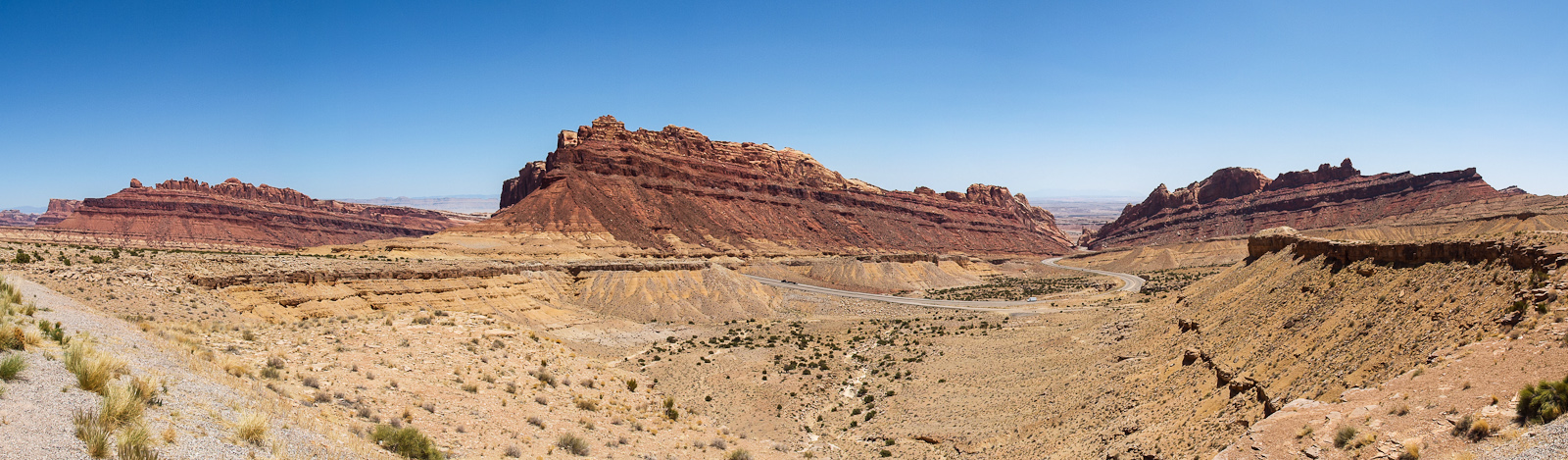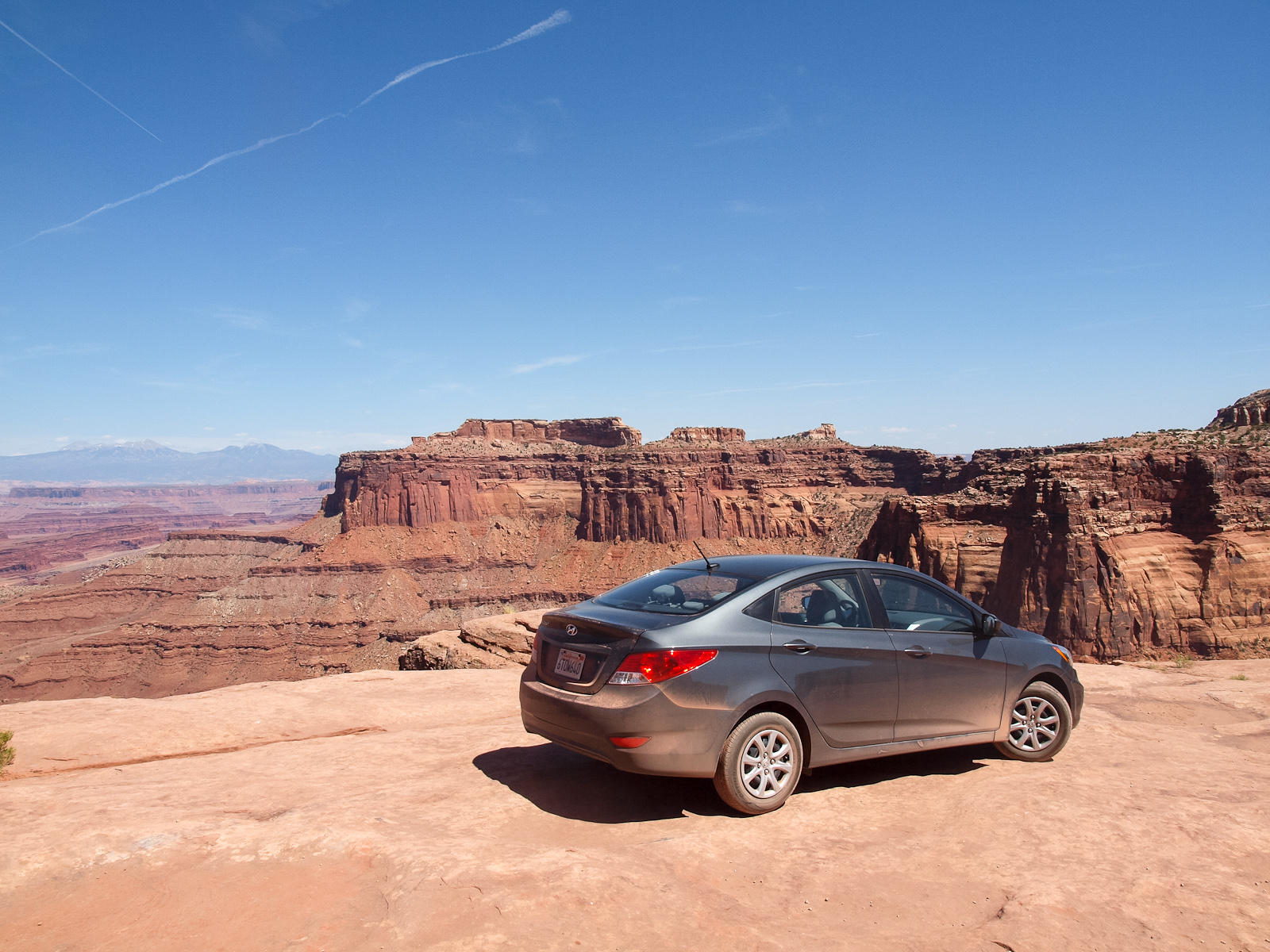 Je passe les 7000 miles quelque part par là bas - j’ai pris la voiture il y en avait 4368… ce qui fait déjà plus de 4000 kilomètres! En tout cas, j’avais entendu du bien de l’Utah, et je ne suis pas déçu. Il faut que je reprenne la route - un petit coup d’oeil à la carte et je me rends compte que je suis à peu près au milieu de ma ‘boucle’. À partir de maintenant, je n’irai pas plus à l’Est mais seulement vers le Sud et l’Ouest, pour rentrer en Californie. Pour commencer, cap sur Monument Valley et la frontière avec l’Arizona!