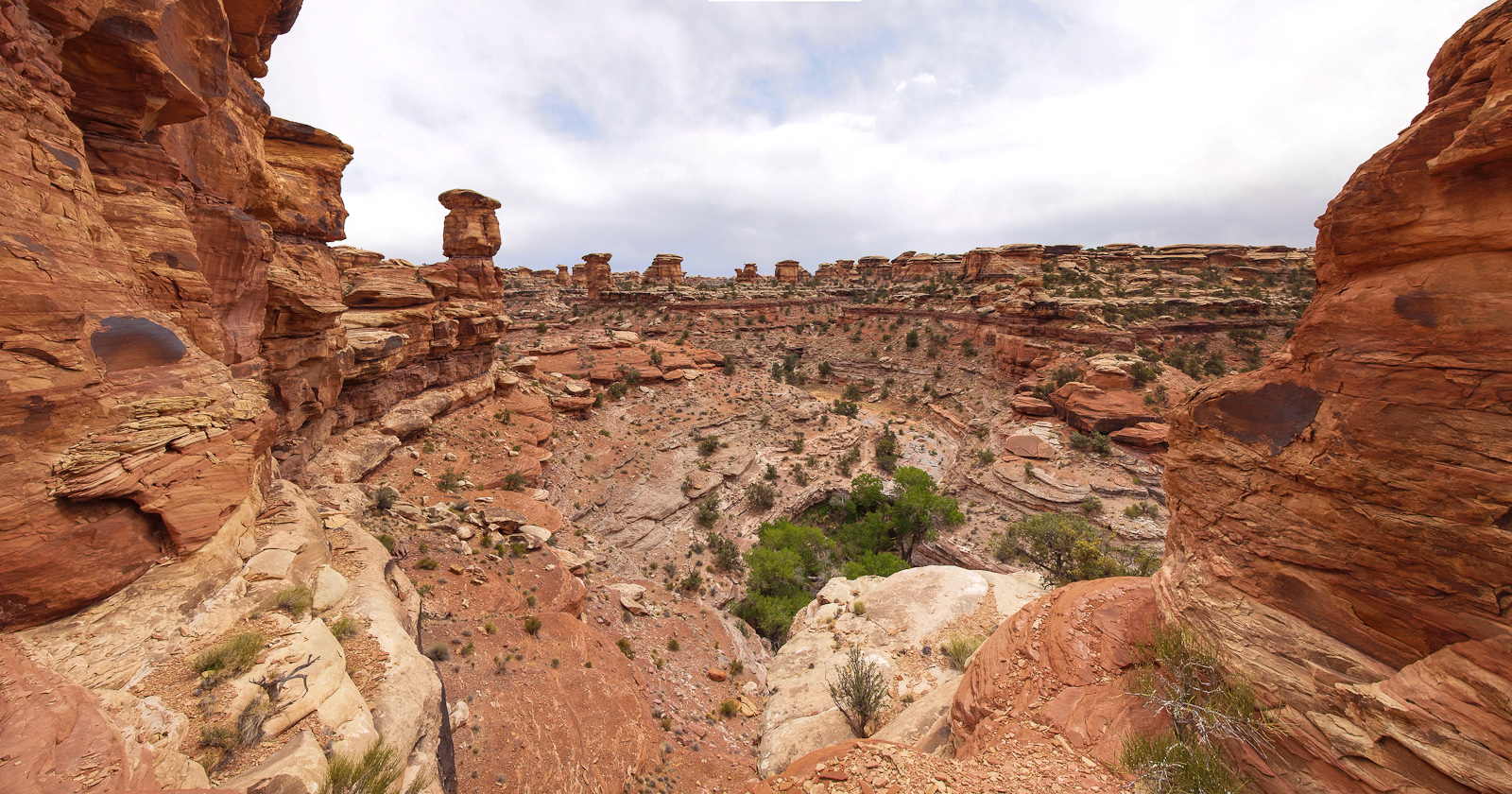 Comme ça fait 2 jours que j’ai pas pris de douche je prends la voiture pour redescendre plus bas, là où coule la Green River (un affluent du Colorado). Zou, petite baignade / toilette dans la rivière - en faisant attention à pas se faire emporter par le courant, quand même… Il y a quelques hiéroglyphes au bord de la route mais rien de bien exceptionnel non plus, je préfère les paysages donc je fais tout le tour pour aller à l’autre partie du parc, The Needles. Différent mais sympa aussi.