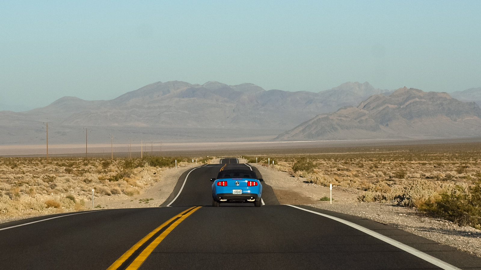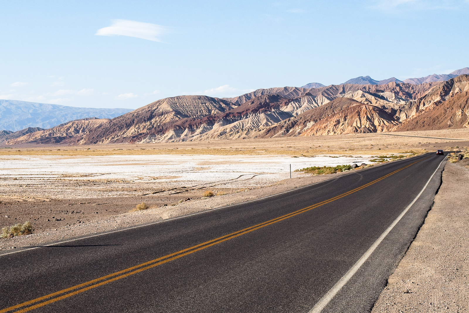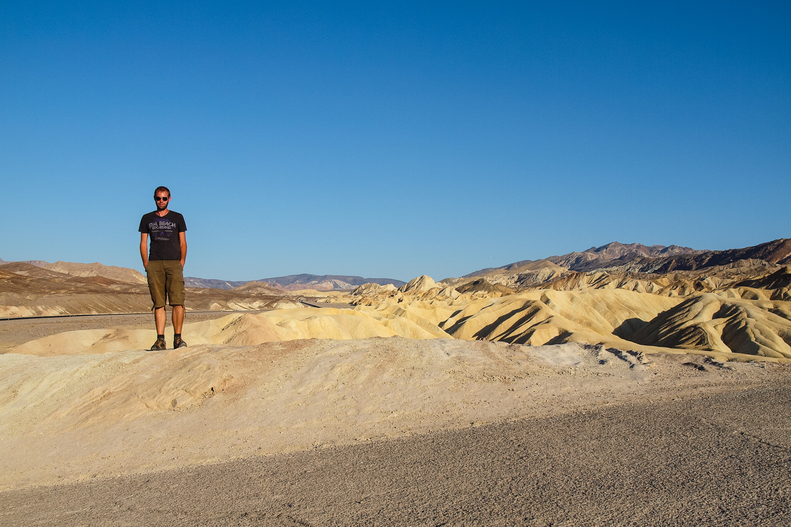Bon… C’est pas tout ça, mais j’ai quand même Las Vegas qui m’attend, moi. Je reprends la route - je fais une petite pause photo à Zabriskie Point, où ont été tournées certaines scènes du film du même nom, un petit coup d’oeil dans le rétro pour vérifier que je laisse la mort derrière moi, et je file vers le Nevada dans le soleil couchant…