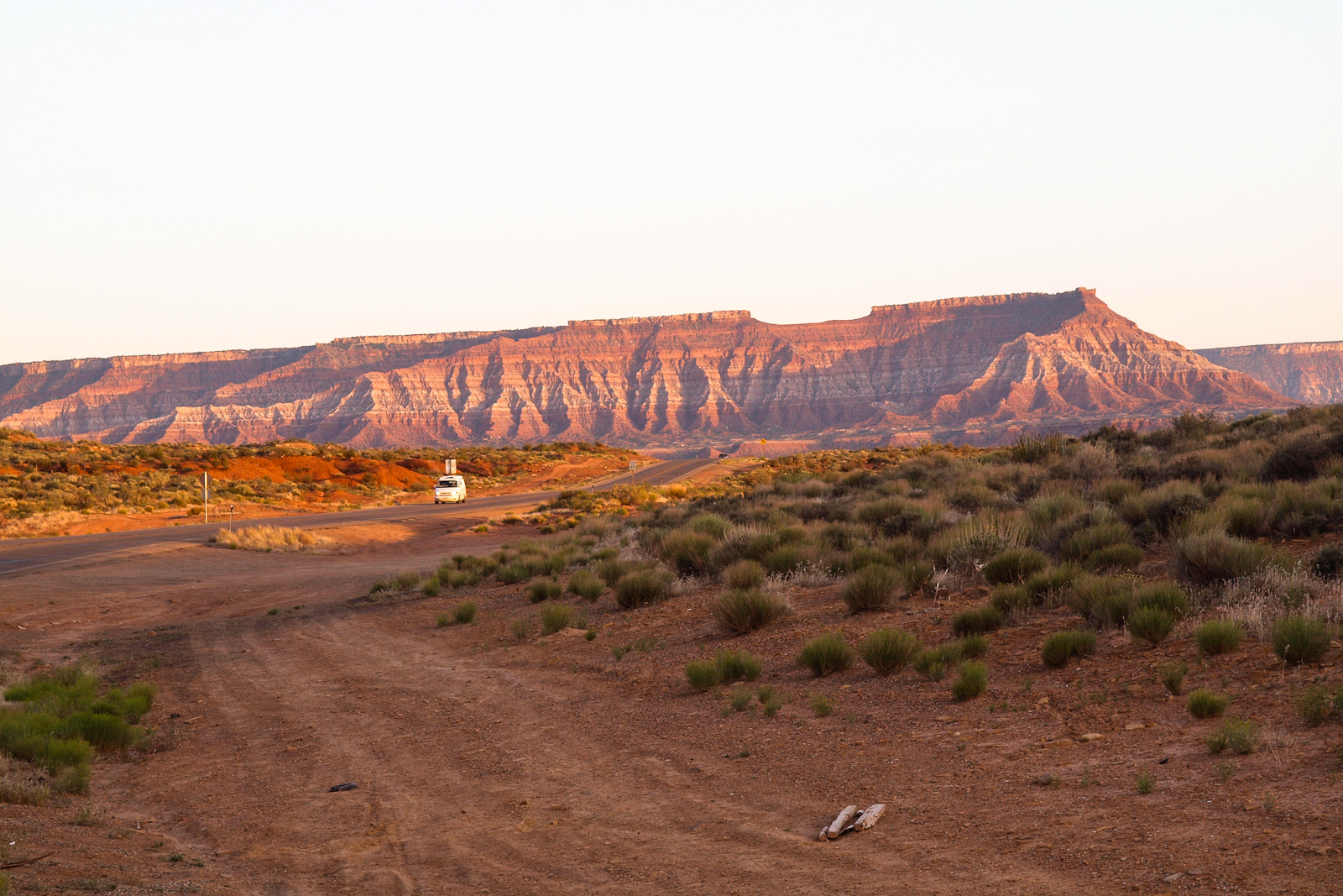 En fin d’après-midi, je reprends la route vers le Nord… et j’arrive finalement au fameux panneau “Next services: 110 miles”, qui veut dire qu’il n’y a ni station-service, ni hôtel, ni quoi que ce soit sur la route pendant les prochains 180 kilomètres. Les derniers hôtels sont donc très chers, et je ne sais pas trop quoi faire. C’est l’occasion de déballer mon nouvel ordi, et de me connecter au WiFi gratuit du Super8. Je repère un Motel6 à bon prix à Richfield, à seulement 35 miles derrière moi… et zou, le tour est joué. Demi-tour, 35 miles ça fait quand même presque 50 kilomètres donc c’est long, mais finalement, j’y suis. Et je peux enfin m’installer pour une nuit de repos bien méritée dans un vrai lit!