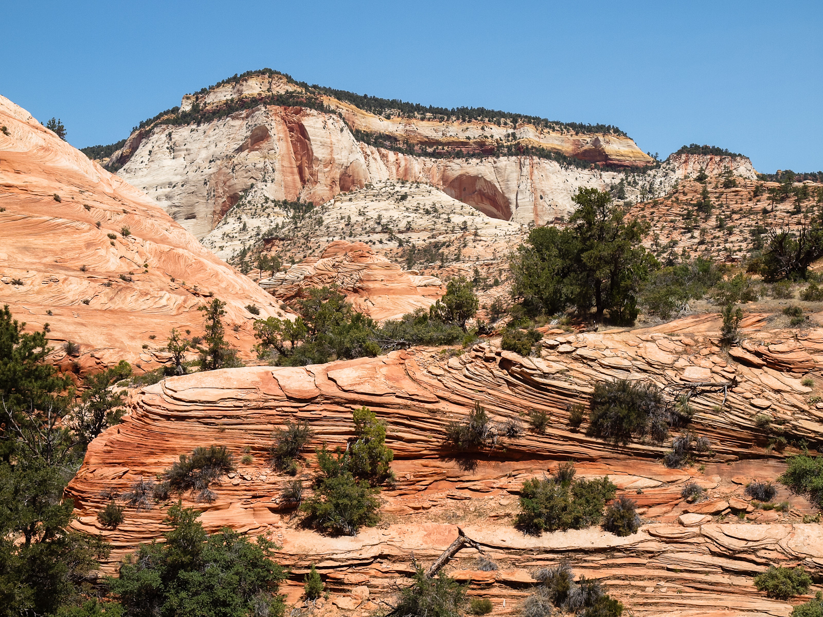 À part ça, c’est presque la routine: quelques heures de route dans des paysages de carte postale, arrivée en fin d’après-midi au Zion National Park. Je m’installe sur le parking pour un pique-nique et une nouvelle nuit dans la voiture. Réveil matinal sous un soleil radieux, j’en profite pour faire quelques randonnées. Le parc est très joli - la Virgin River coule au fond d’un canyon sculpté entre deux massifs rocheux. Il y a plein d’écureuils, des jolies fleurs, des mini-lacs… C’est la nature et c’est très chouette.
