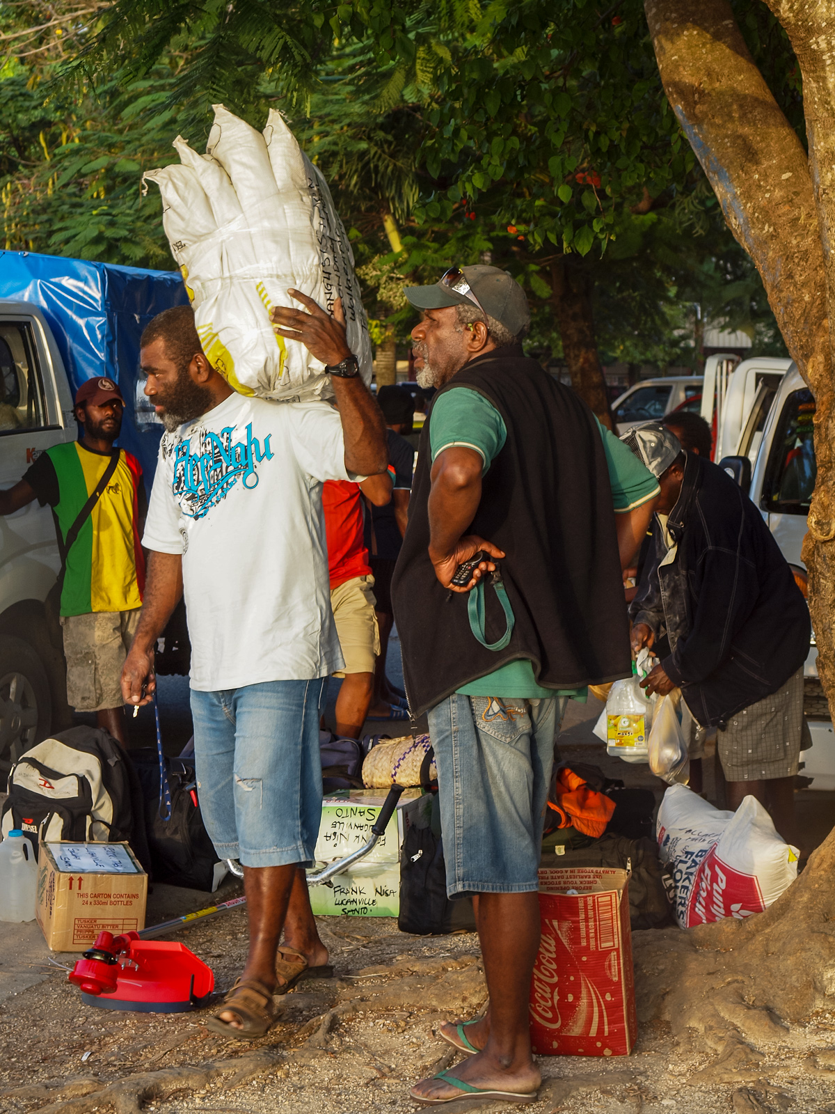 À part ça, en ville il y a quelques magasins, souvent tenus par des Chinois, un marché plein de couleurs où on mange des bons petits plats pour pas cher… Un terrain de pétanque, des embouteillages les jours où le bateau de touristes débarque son lot de gros Australiens, le français, l’anglais et le bislama qui se mélangent dans un joyeux bazar - la bonne humeur permanente des locaux y est sans doute pour quelque chose!