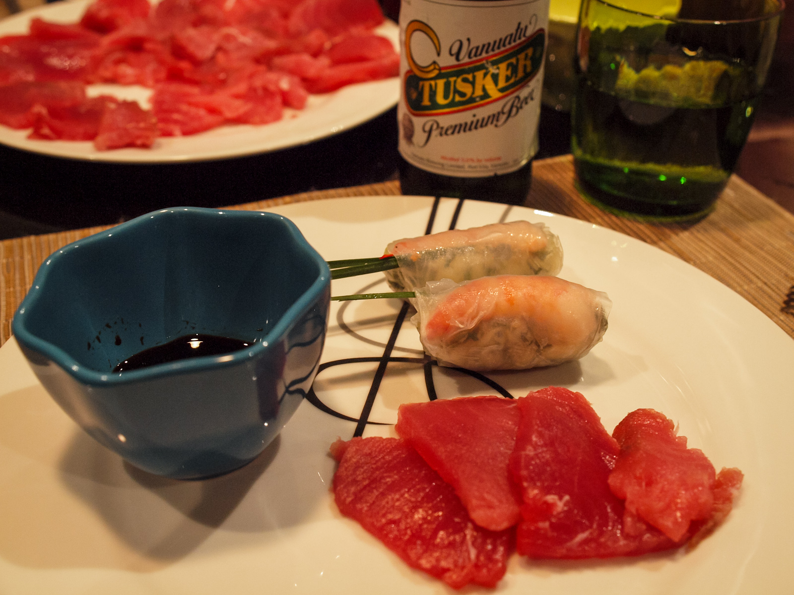 Bien sûr il y a aussi des choses à voir en dehors de Port-Vila. Je me suis mis un peu au kite surf, j’ai été faire du snorkeling sur un avion de la Deuxième Guerre Mondiale qui s’est écrasé sur un récif après être tombé en panne d’essence, passé une après-midi sur Hideaway Island , un petit îlot tout mignon, et surtout profité de ma nouvelle situation de touriste de luxe en dégustant des sashimis de thon fraîchement pêché (entre autres bons petits plats).