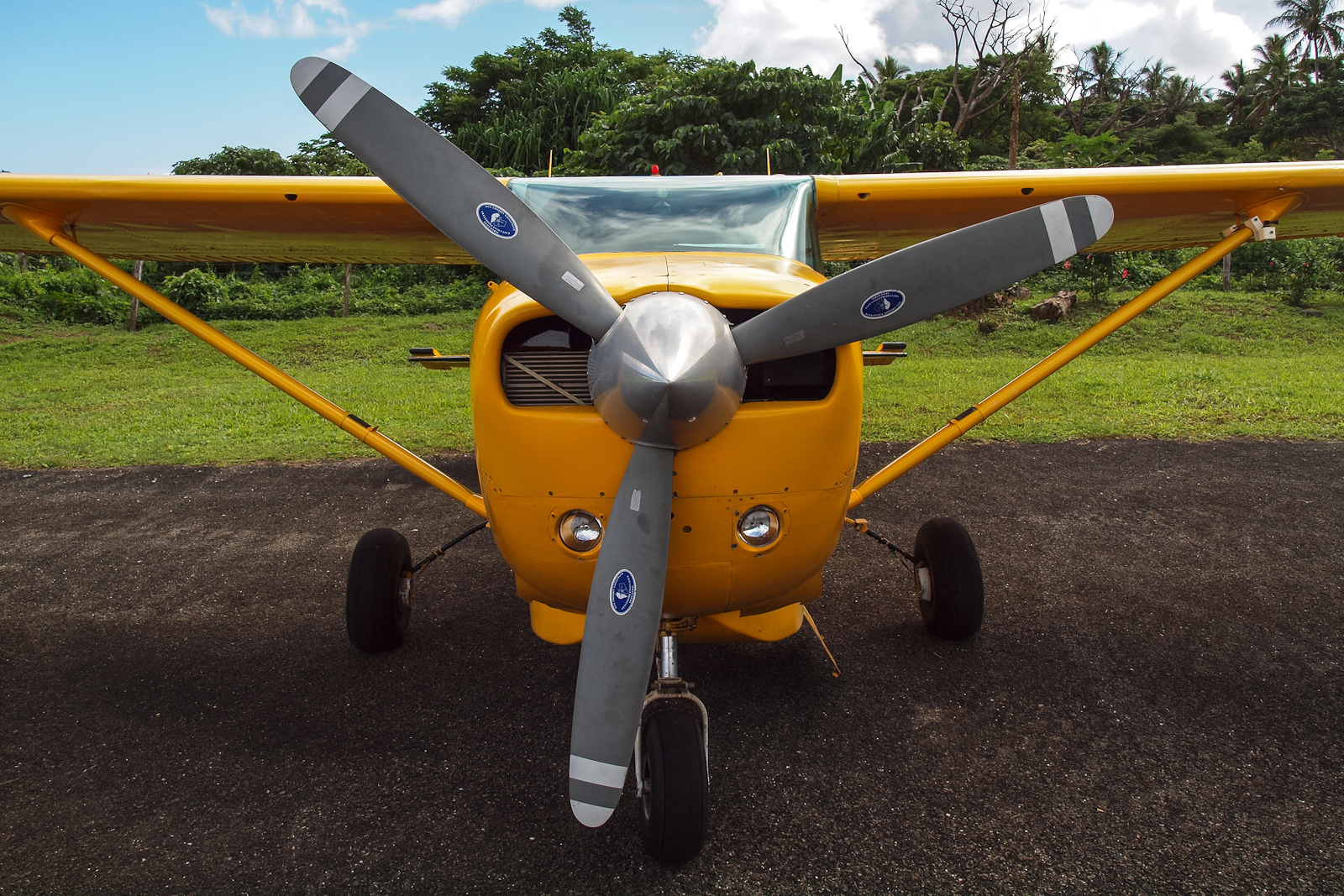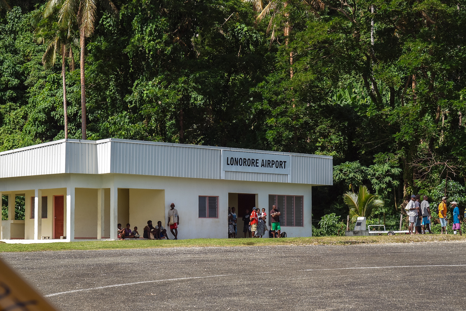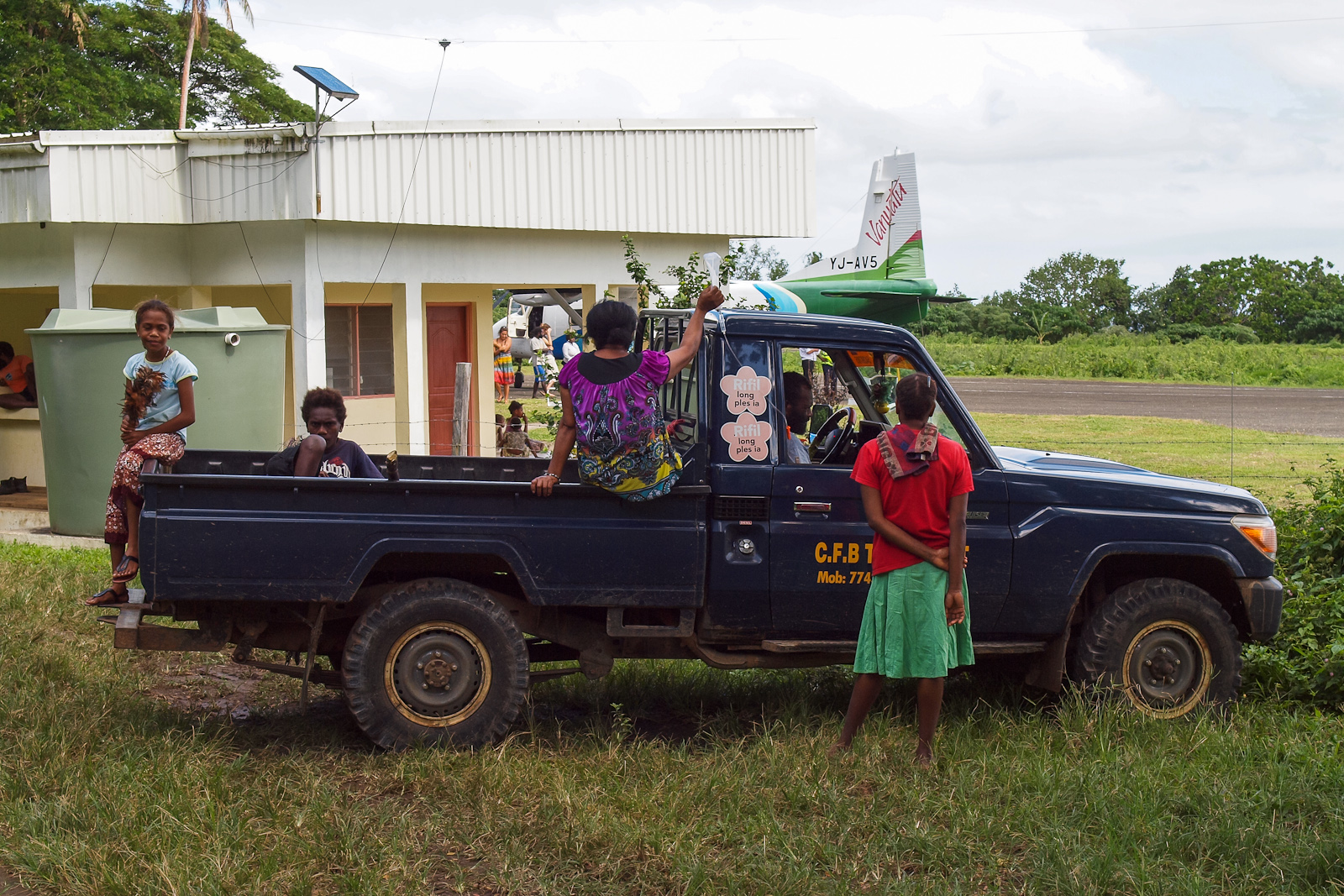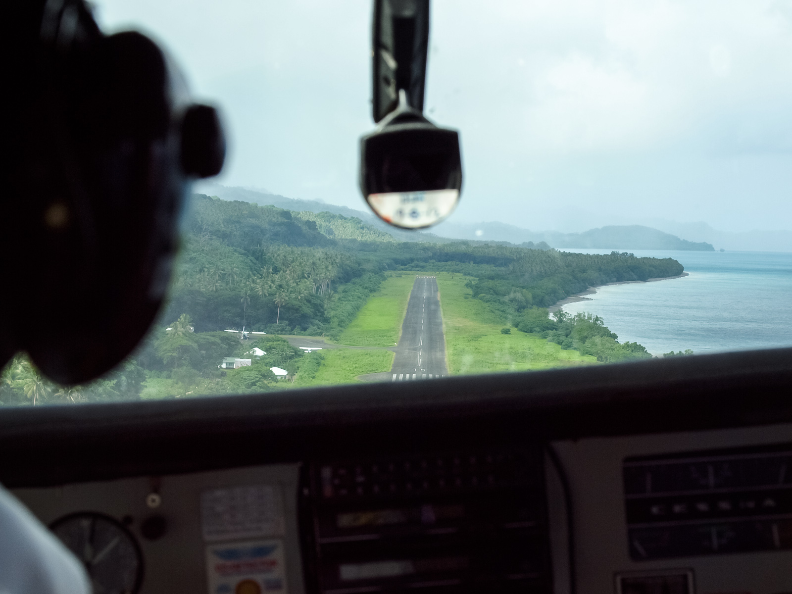 En ce qui nous concerne, on a attendu d’avoir de bonnes prévisions météo, on a réservé un avion privé (c’est pas la classe?) et on s’est envolés, direction Pentecôte. Après une grosse heure de vol à survoler le Pacifique et ses atolls coralliens, on atterrit à l’aéroport de Lonorore. Pas la peine de chercher le comptoir d’enregistrement et la salle d’embarquement, c’est pas trop l’esprit
