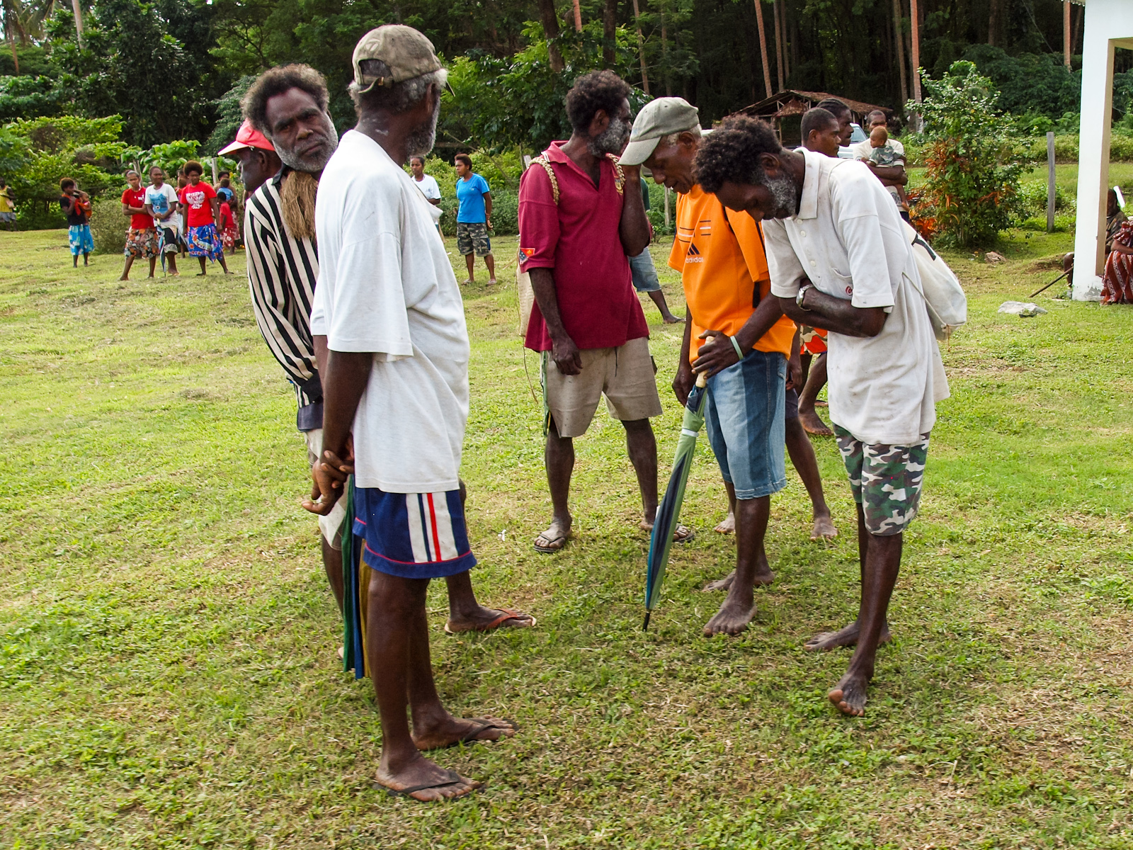 Les “premiers secours” arrivent - on lui donne des baffes, lui tourne la tête dans tous les sens, on récupère tous les fonds de bouteille d’eau qui traînent pour l’asperger, et finalement on le relève en le tenant par les cheveux. Le pauvre bonhomme a les yeux révulsés et marche difficilement, avec une coordination des mouvements qui a l’air sérieusement entamée! Le chef nous rassure, c’est pas bien grave et ça arrive parfois. I stret nomo…