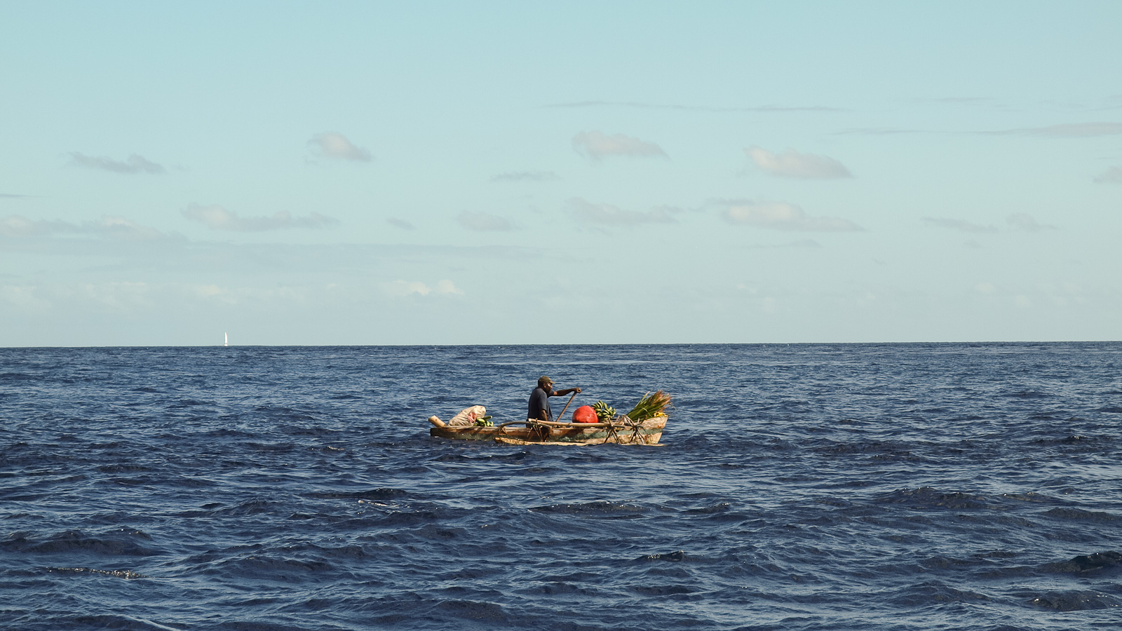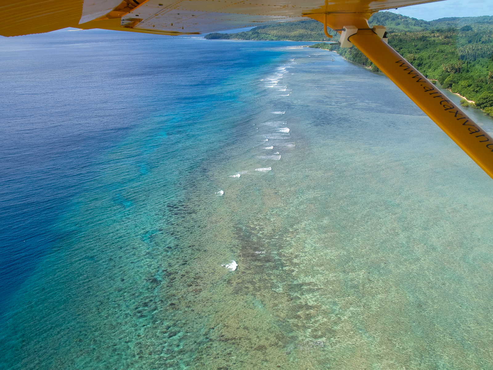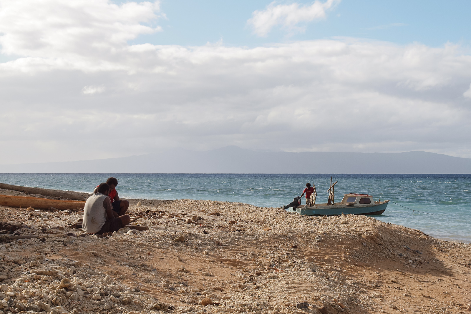 Et finalement, on atterrit à Epi. L’aéroport se résume à une piste en herbe le long de la mer - à peine débarqués, on monte dans un bateau pour aller prendre le déjeuner un peu plus loin. Maintenant qu’on a mangé, on peut partir à la poursuite du dugong, un mammifère marin en voie d’extinction qui a la réputation de traîner dans le coin.