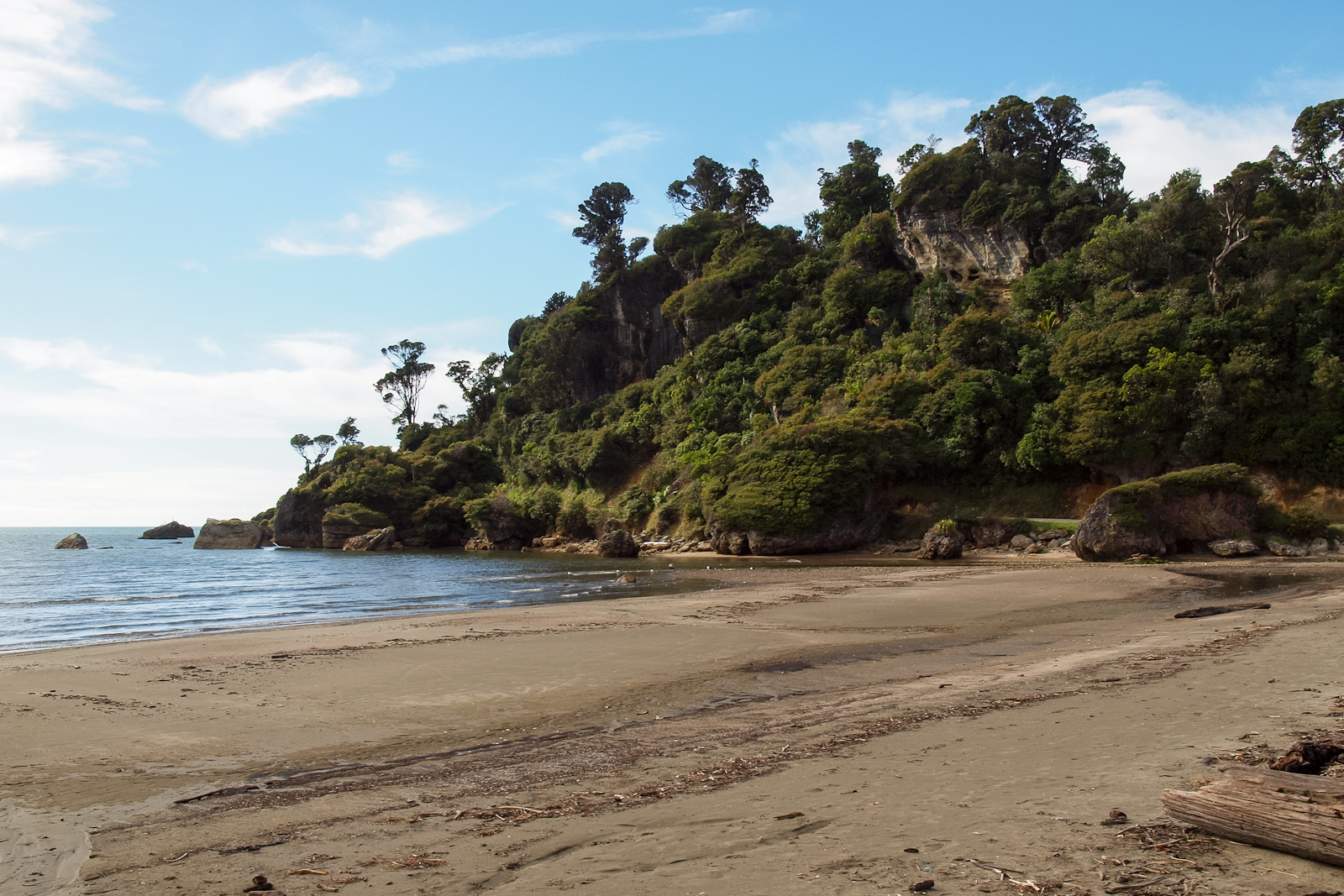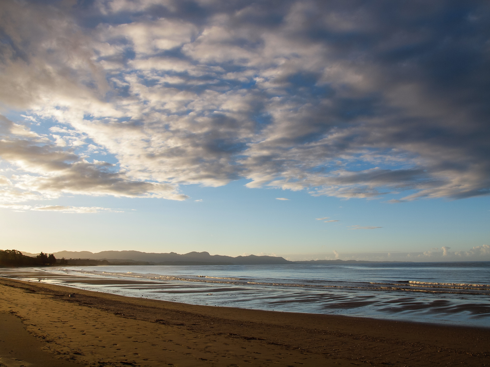 Toujours plus au nord, je suis tombé sous le charme de la région de Tasman, avec les montagnes d’un côté, la mer bleu turquoise de l’autre, et la route toute pourrie qui passe entre les deux. J’en ai oublié de faire des photos, et j’ai fini par m’échouer sur une plage déserte. Au retour j’ai vraiment pu apprécier la route toute pourrie qui passe entre les deux: il y avait tellement de brouillard que je voyais pas à 5 mètres, et je priais pour que des voitures en face arrivent pour que je sache de quel côté ça allait tourner. 50 kilomètres en 1h20, qui dit mieux?